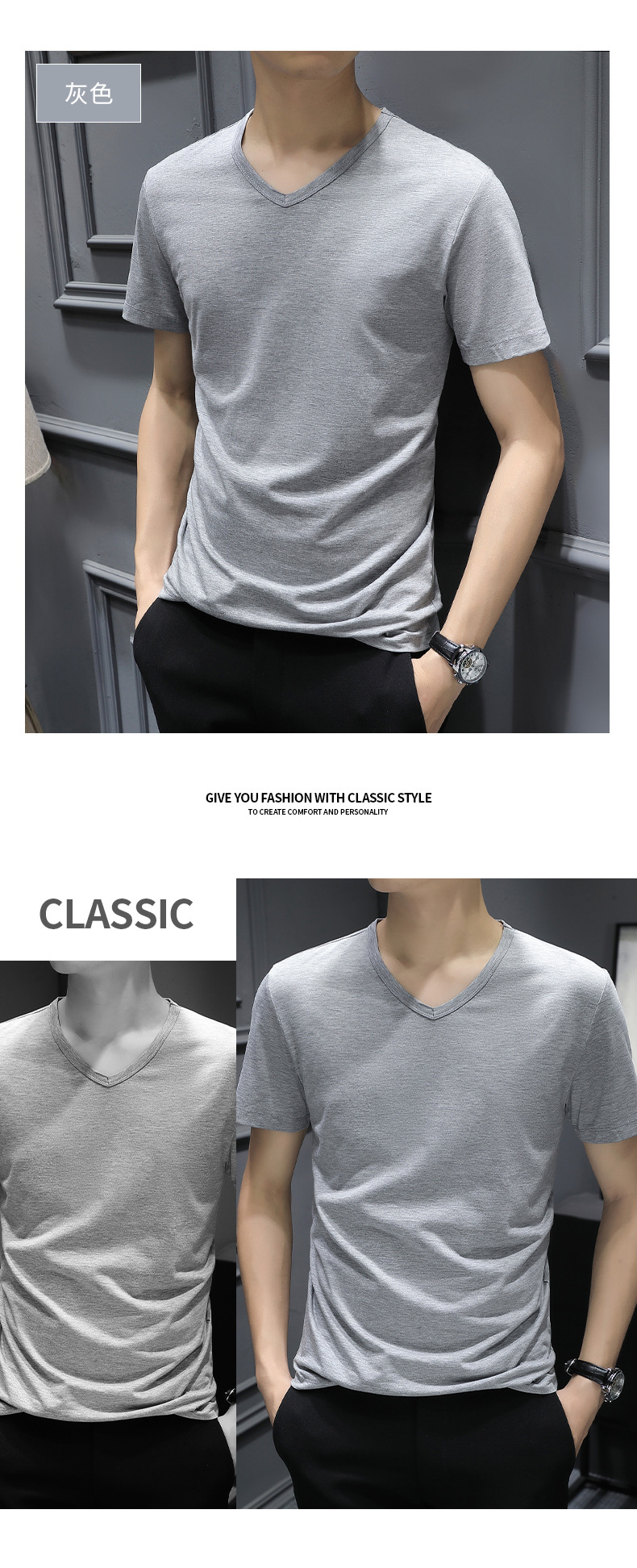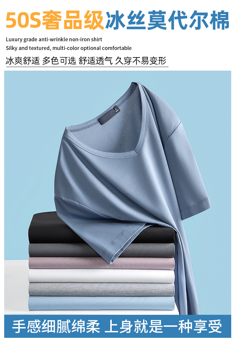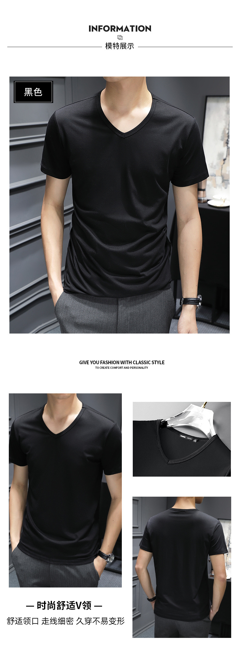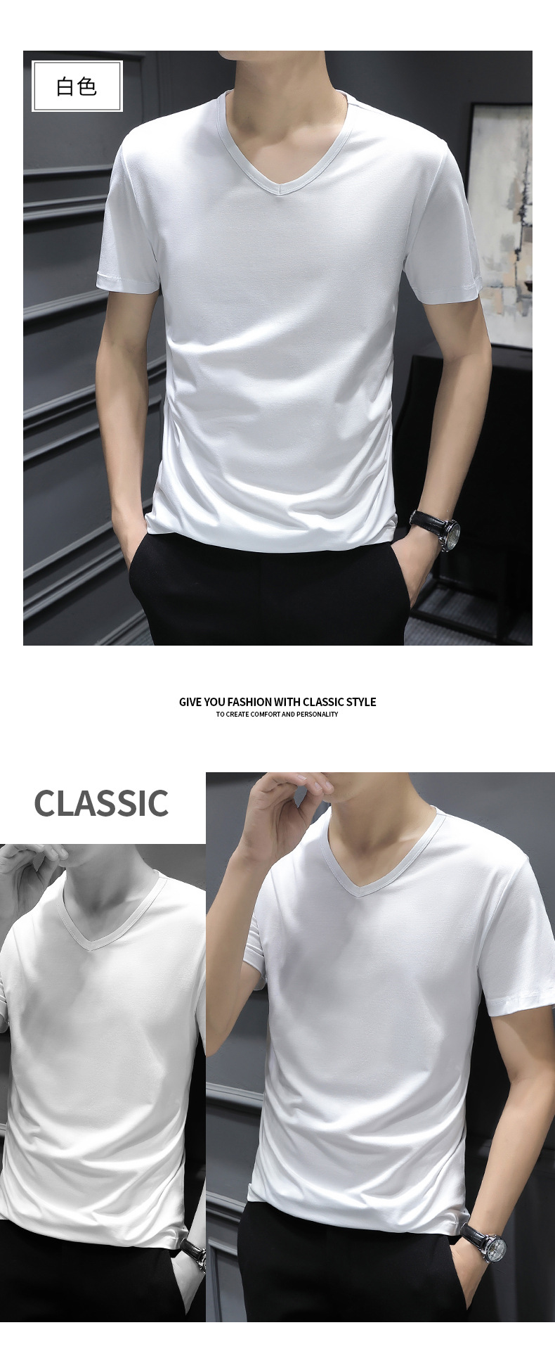50S 피부 친화적인 모달 반팔 티셔츠 남성용 여름 청소년 기본 셔츠 브이넥 아이스 실크 속건성 통기성 상의스토어 가기