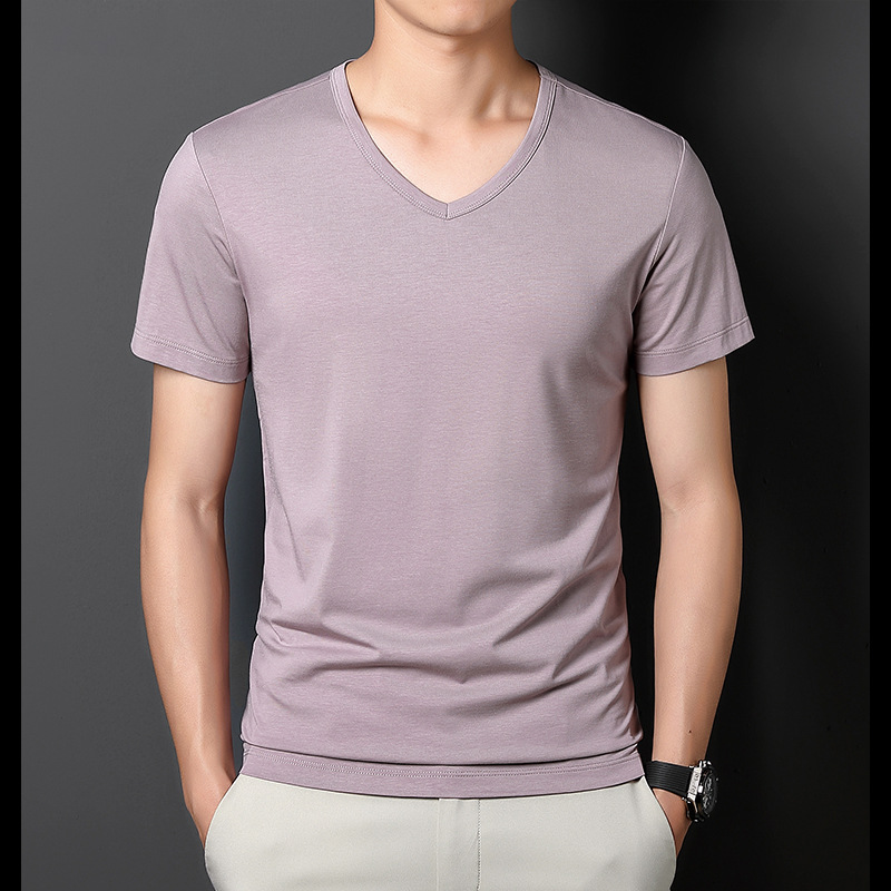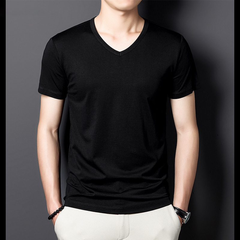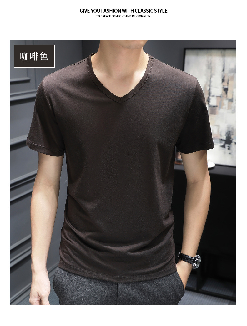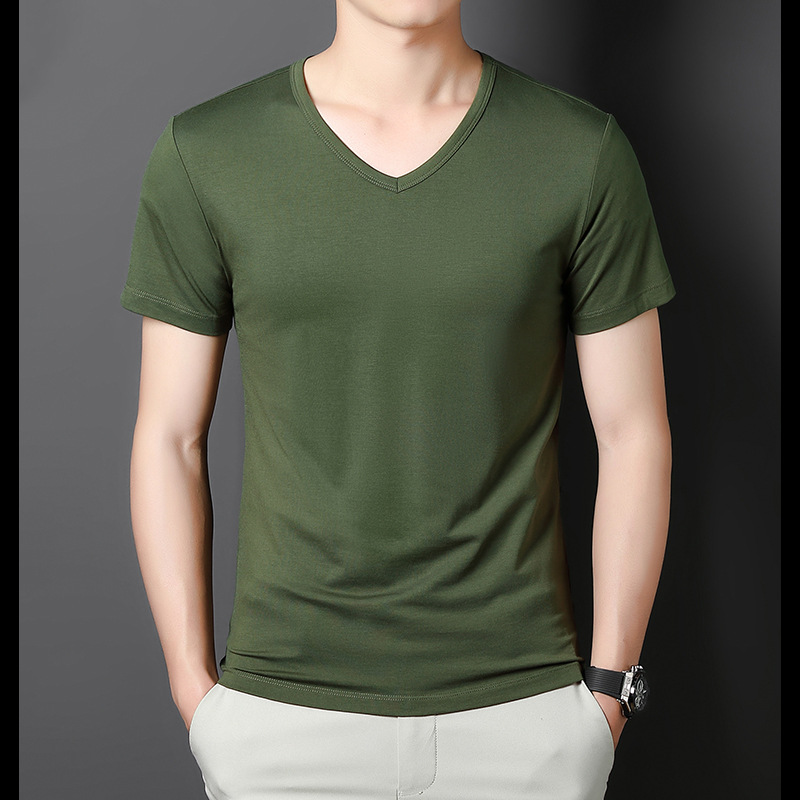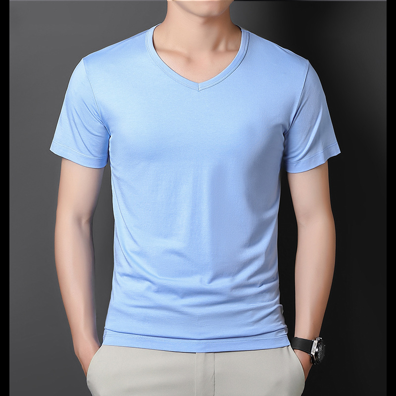 50S 피부 친화적인 모달 반팔 티셔츠 남성용 여름 청소년 기본 셔츠 브이넥 아이스 실크 속건성 통기성 상의