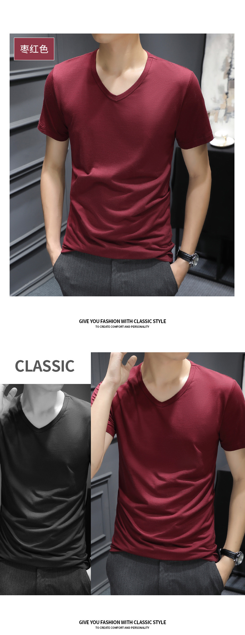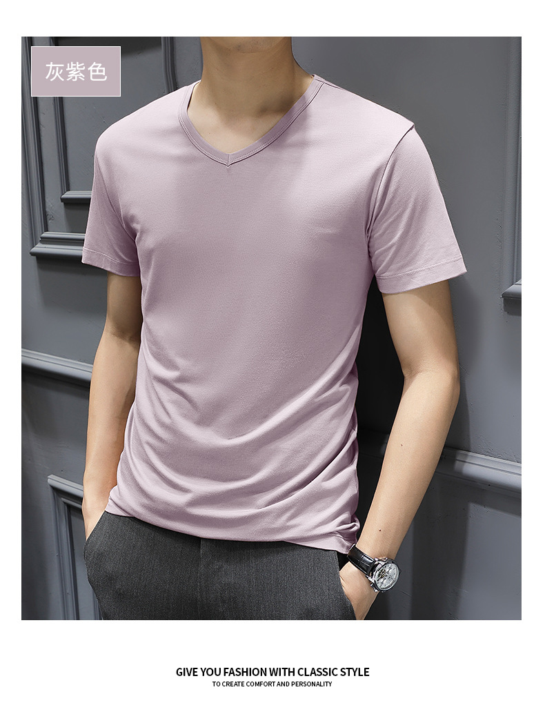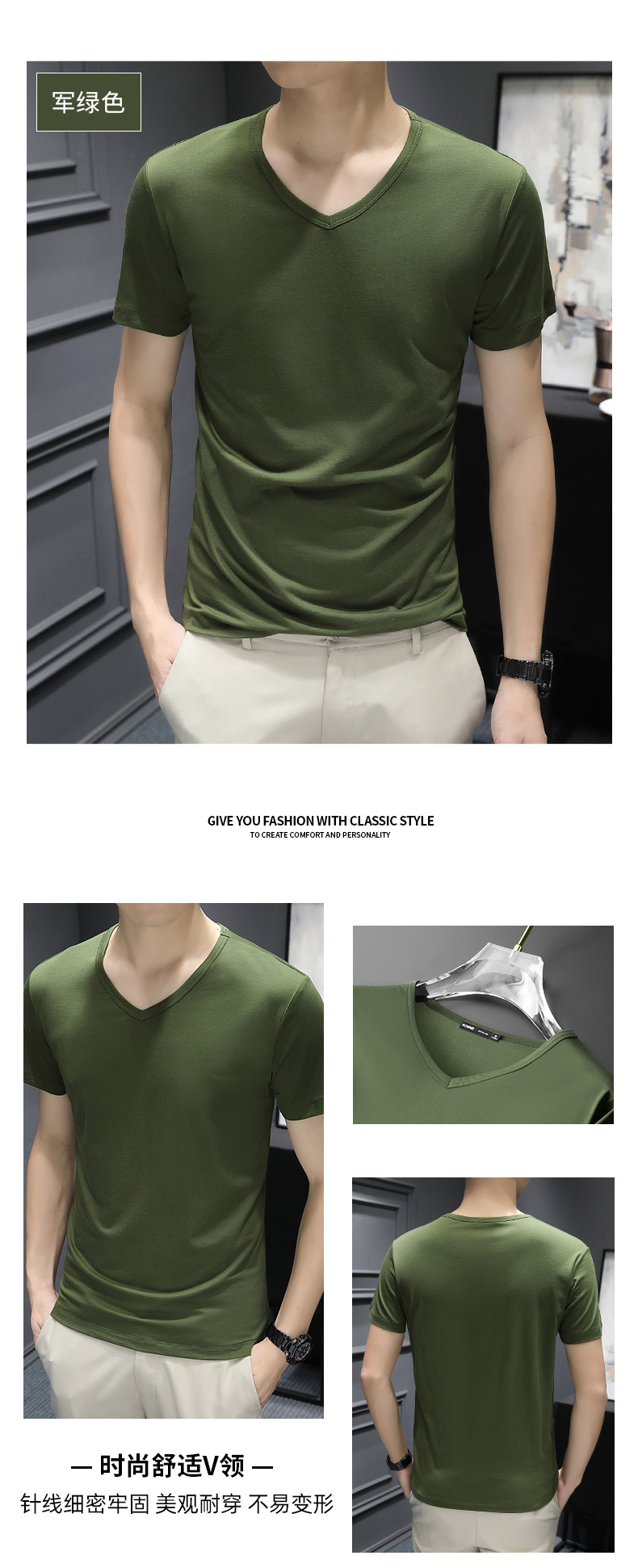 50S 피부 친화적인 모달 반팔 티셔츠 남성용 여름 청소년 기본 셔츠 브이넥 아이스 실크 속건성 통기성 상의