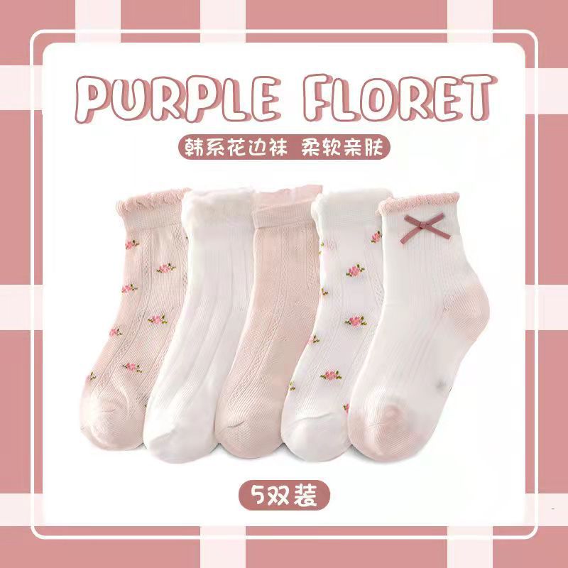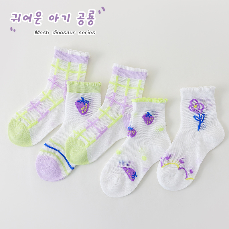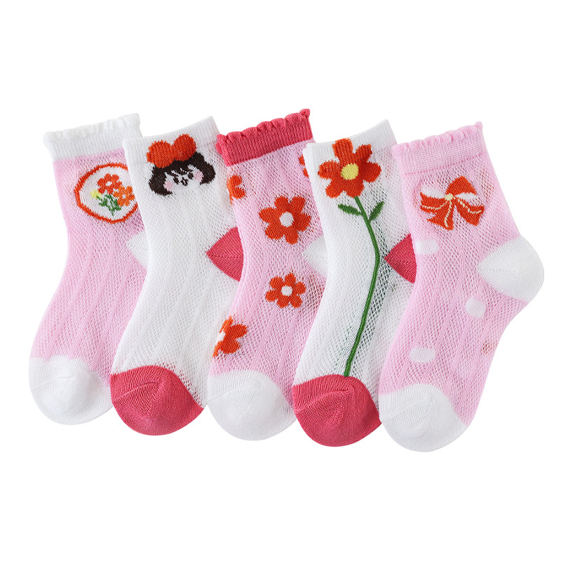여자 양말 봄과 여름 얇은 메쉬 요정 아기 활 면화 통기성 어린이 중반 송아지 양말 도매