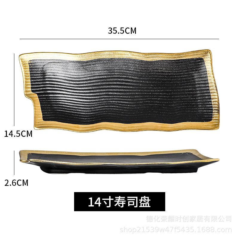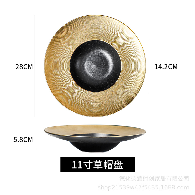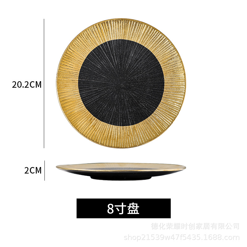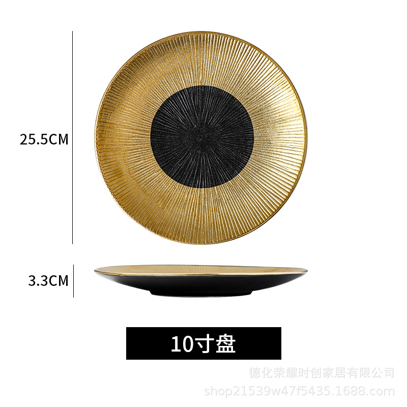 북유럽 스타일 크리 에이 티브 골드 세라믹 식기 프놈펜 서양 음식 스테이크 접시 스시 접시 현대 가정용 호텔 접시