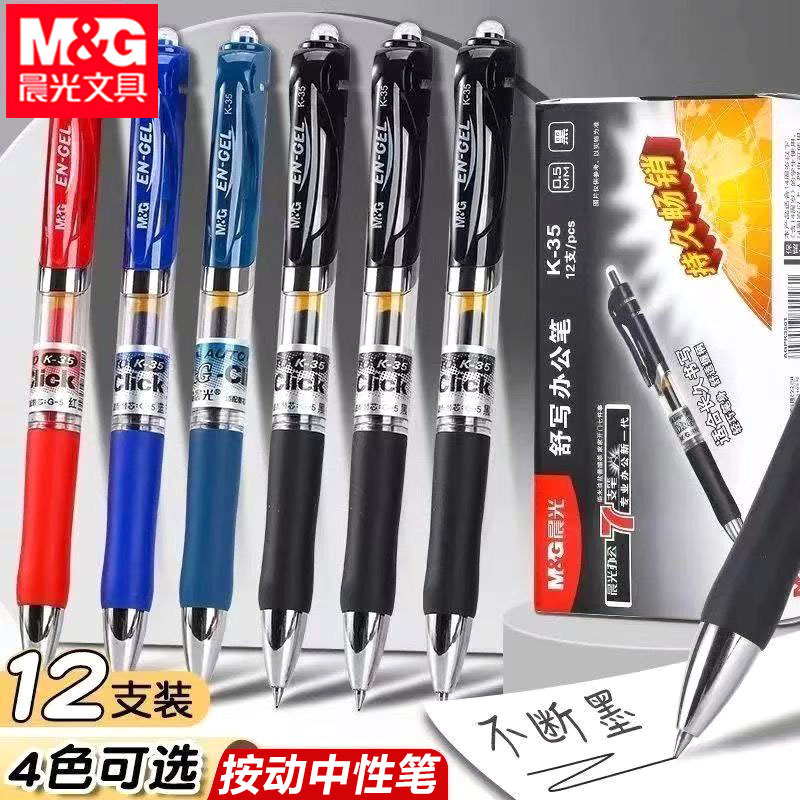 K35 클릭형 젤펜 0.5mm 사무용 검정색 펜심 서명펜 레드 클릭형 워터펜 학생 시험용 카본펜