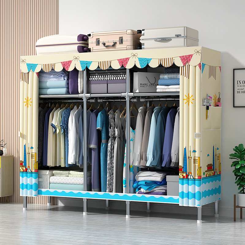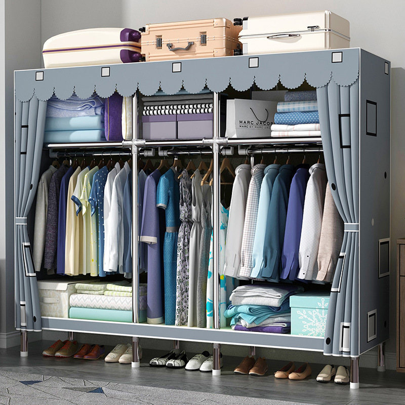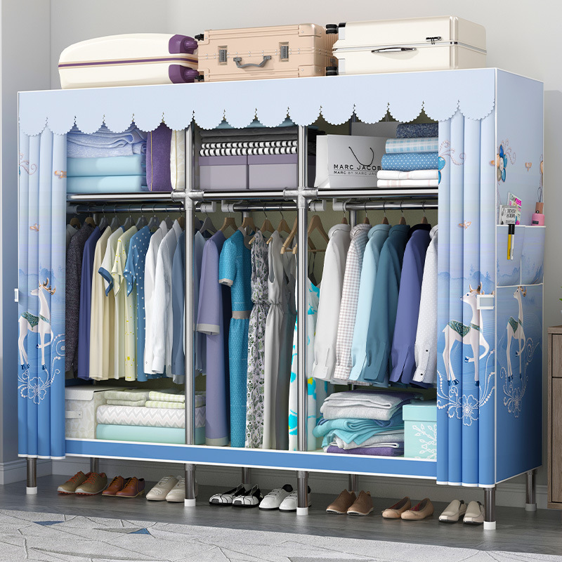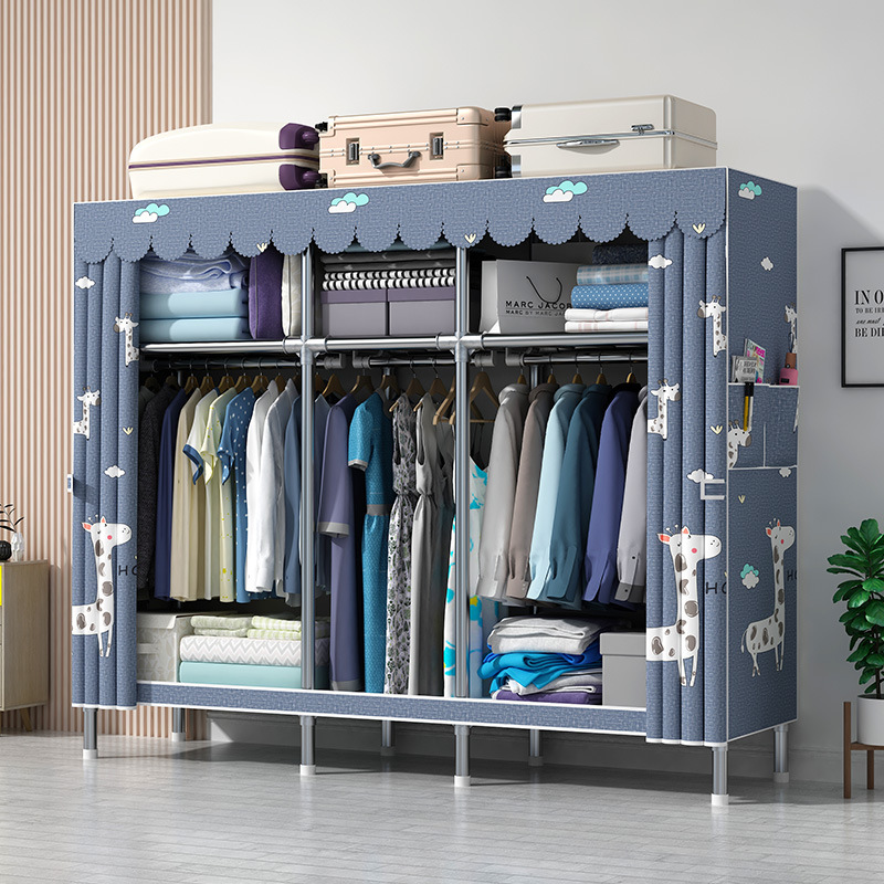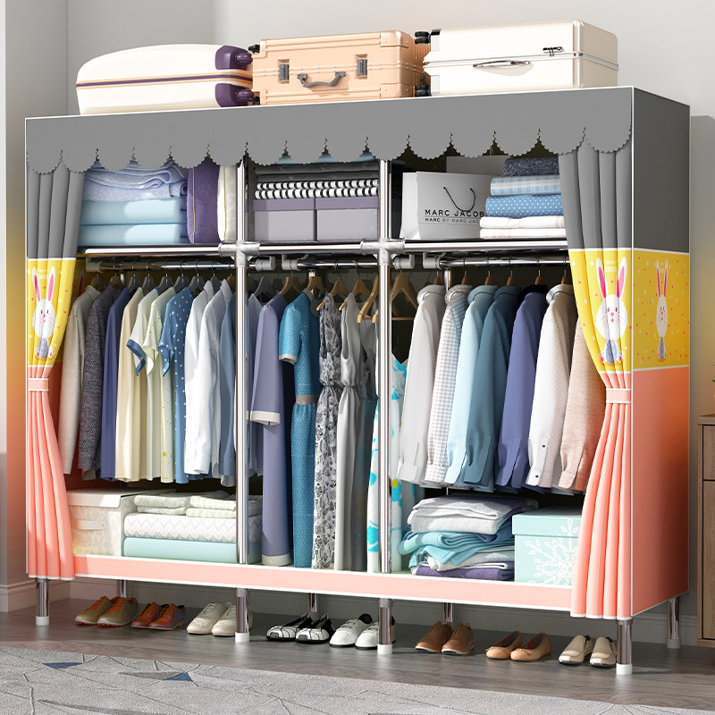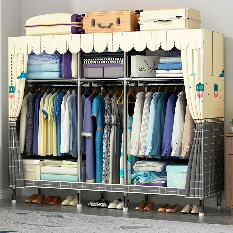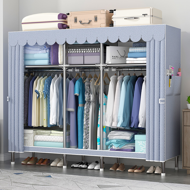 간단한 옷장 강관 두꺼운 강화 합금 인터페이스 천 옷장 간단한 경제적 인 조립 보관 옷장