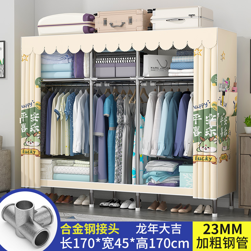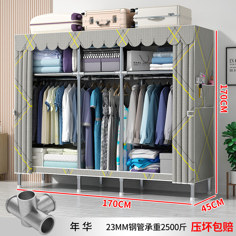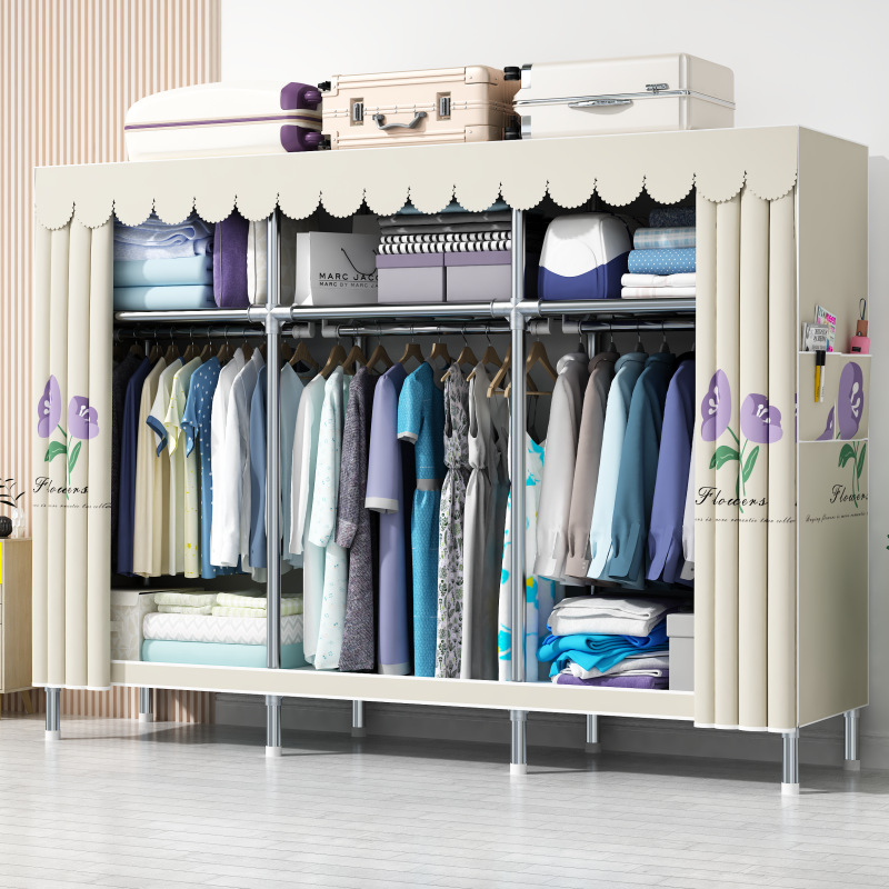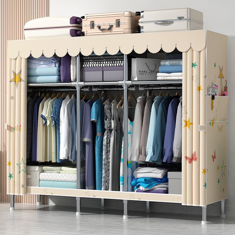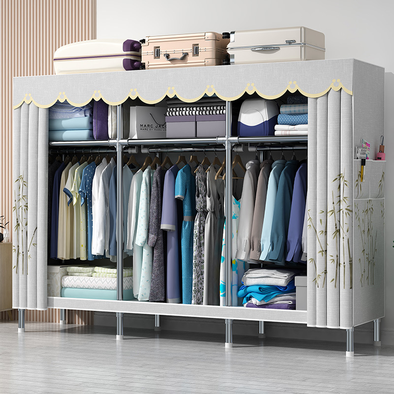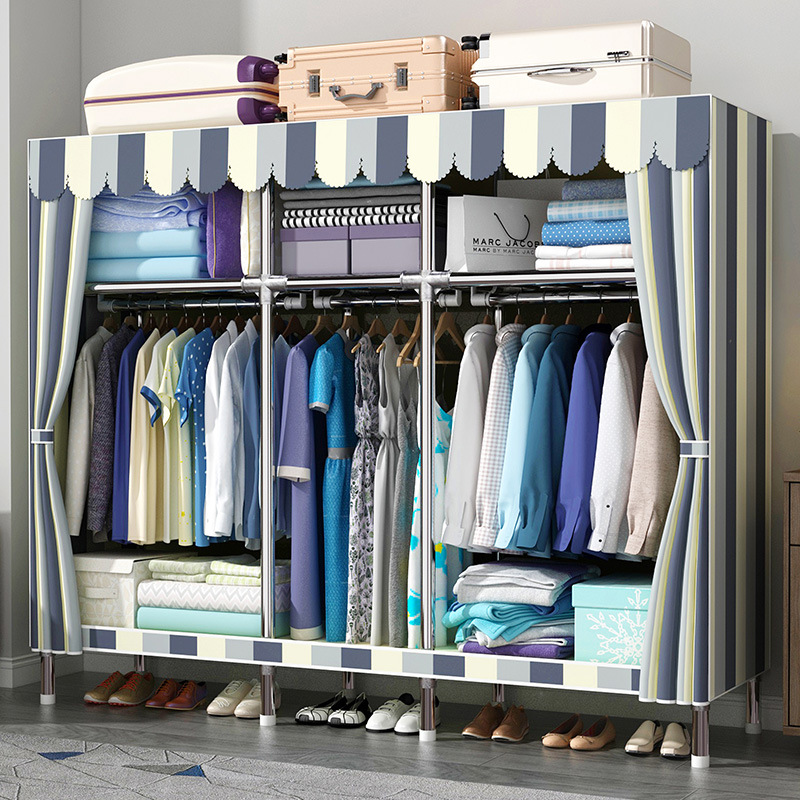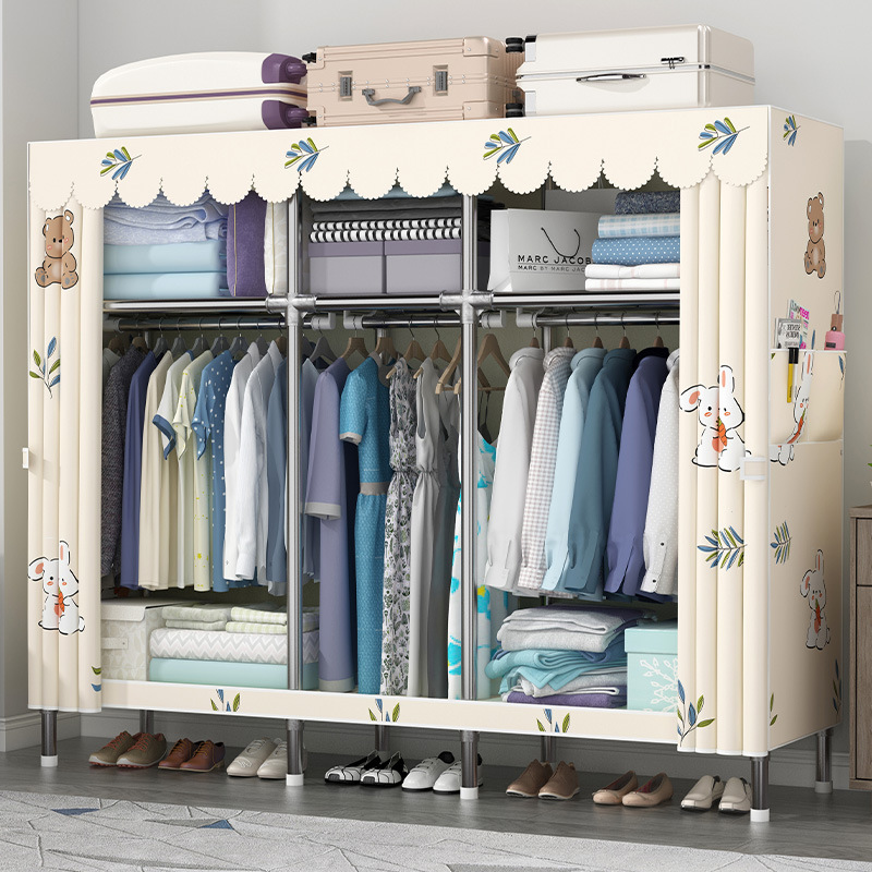 간단한 옷장 강관 두꺼운 강화 합금 인터페이스 천 옷장 간단한 경제적 인 조립 보관 옷장
