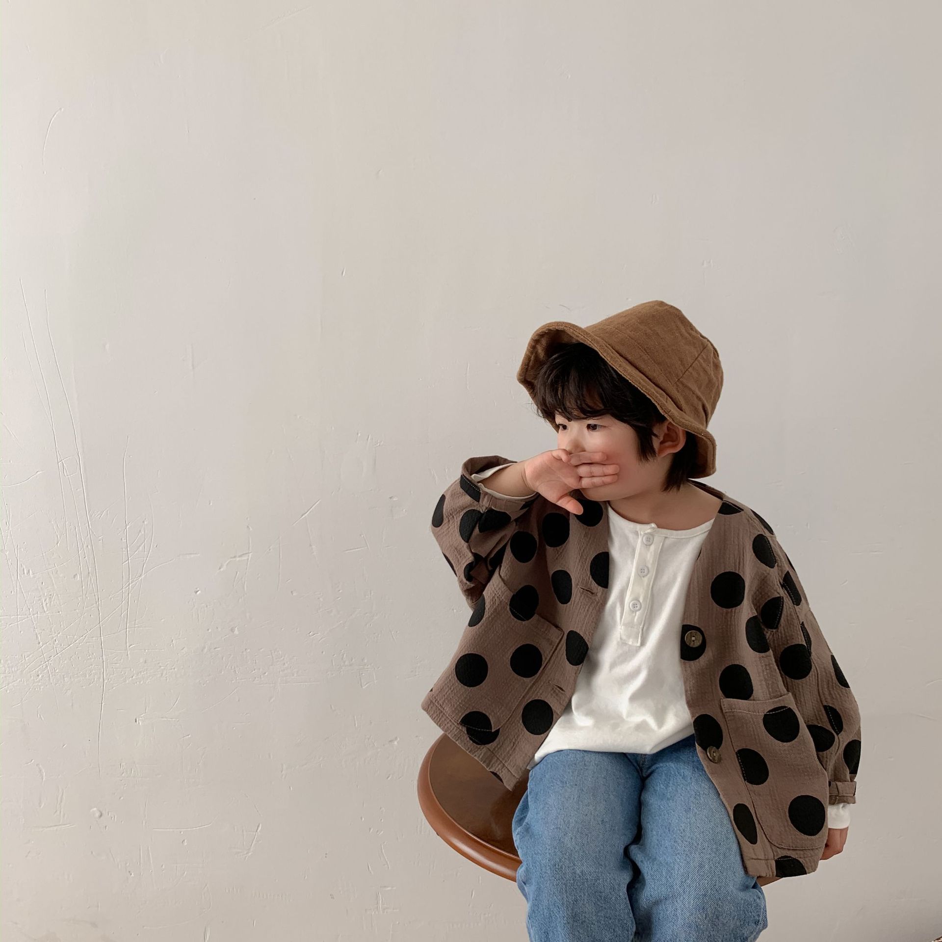 面料柔软透气,复古的波点和简洁的原试色