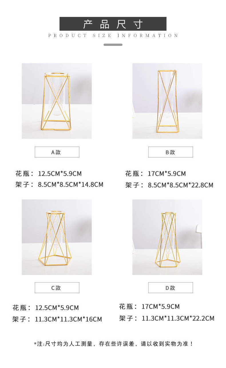 유리 꽃병, 금색 기하학적 철제 꽃병, 인스 스타일 탁상 장식품, 수경재배 용기, 유리 시험관 꽃꽂이스토어 가기