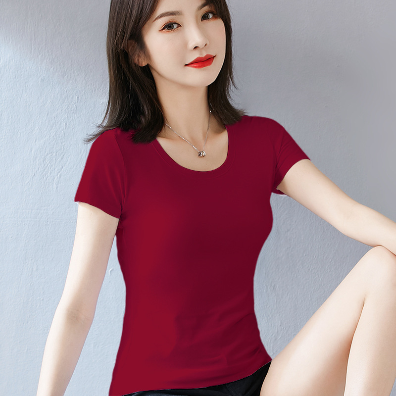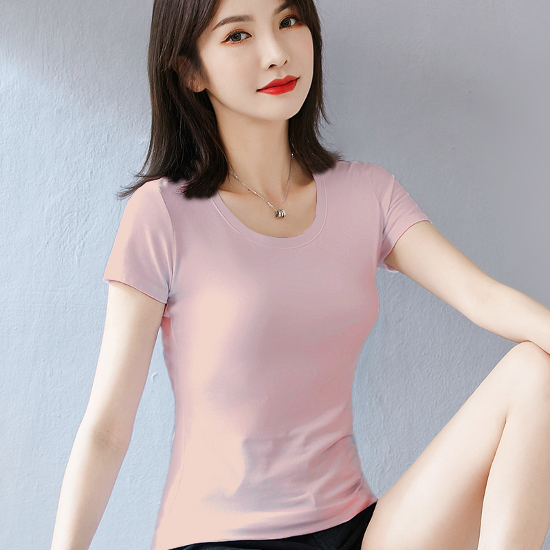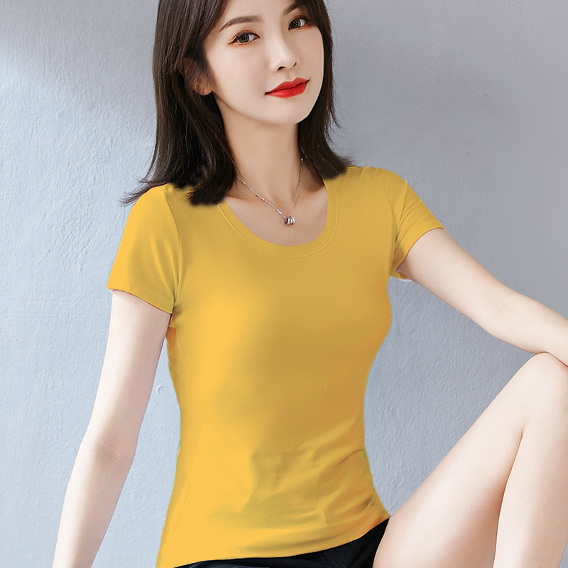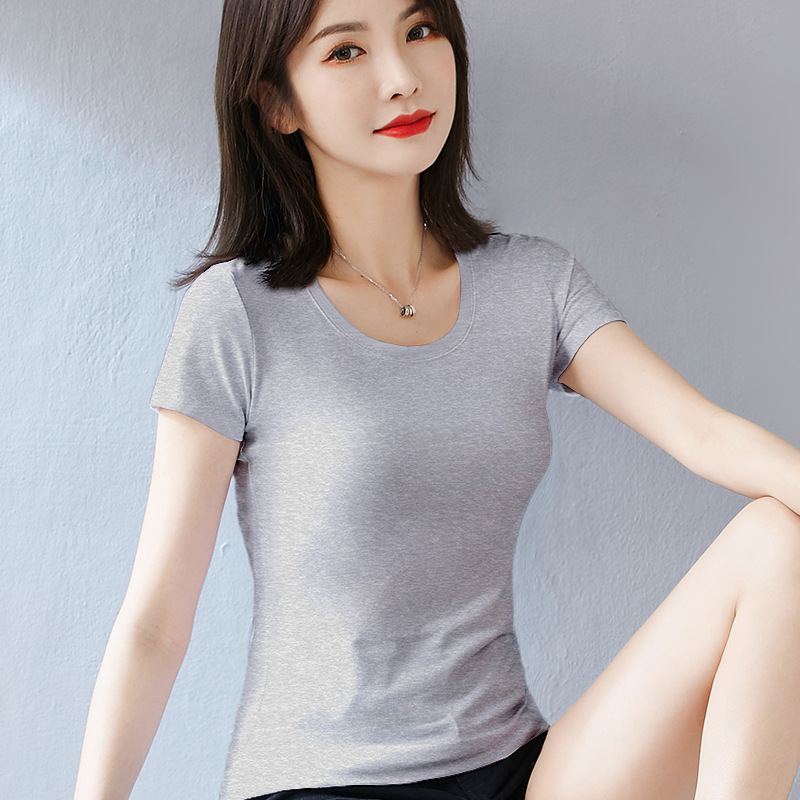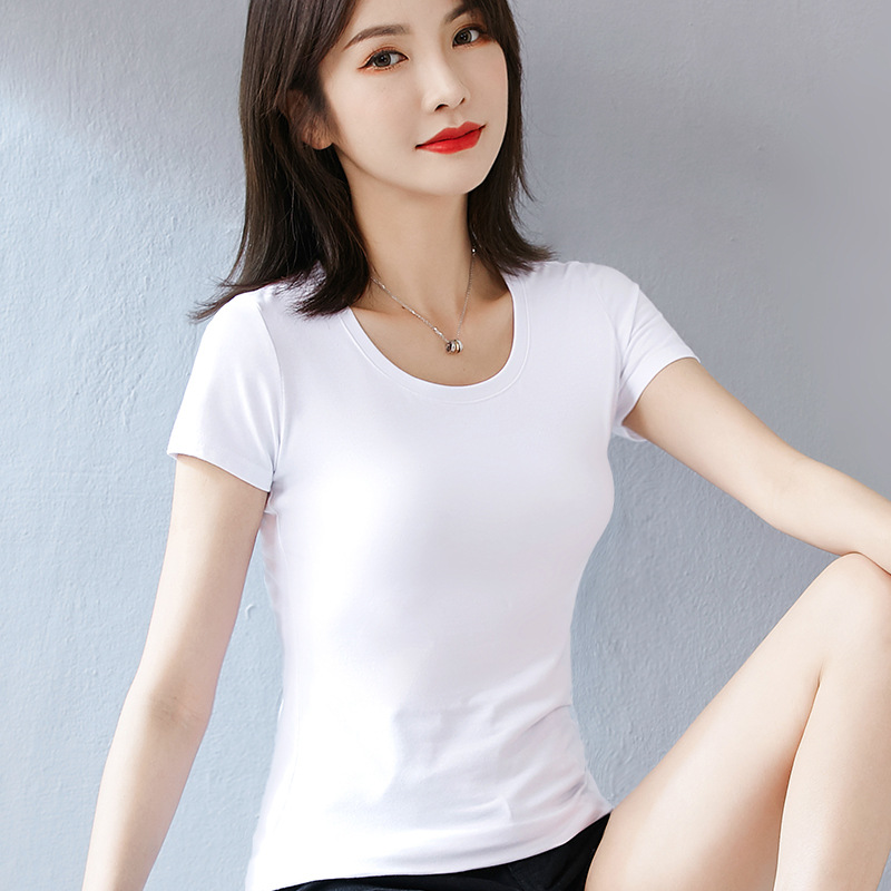 퓨어 코튼 화이트 티셔츠 여성용 반팔 슬림핏 슬리밍 여름 짧은 솔리드 컬러 타이트베이스 셔츠 우아한 내부 탑스토어 가기