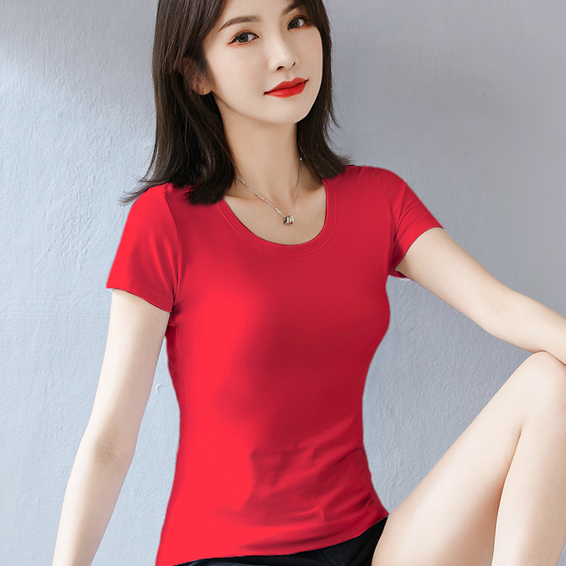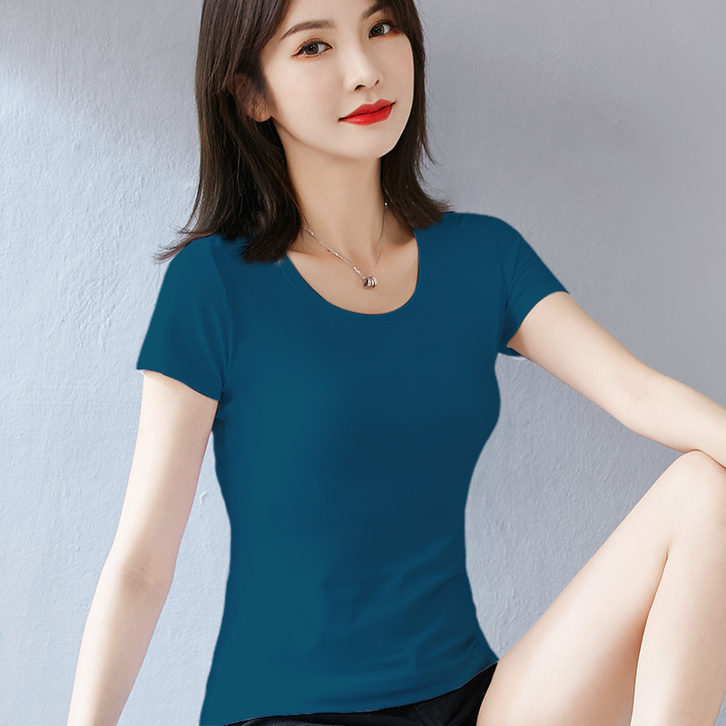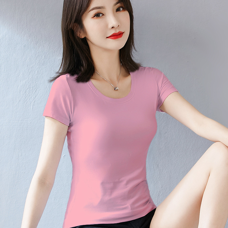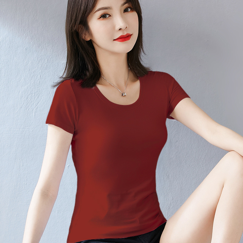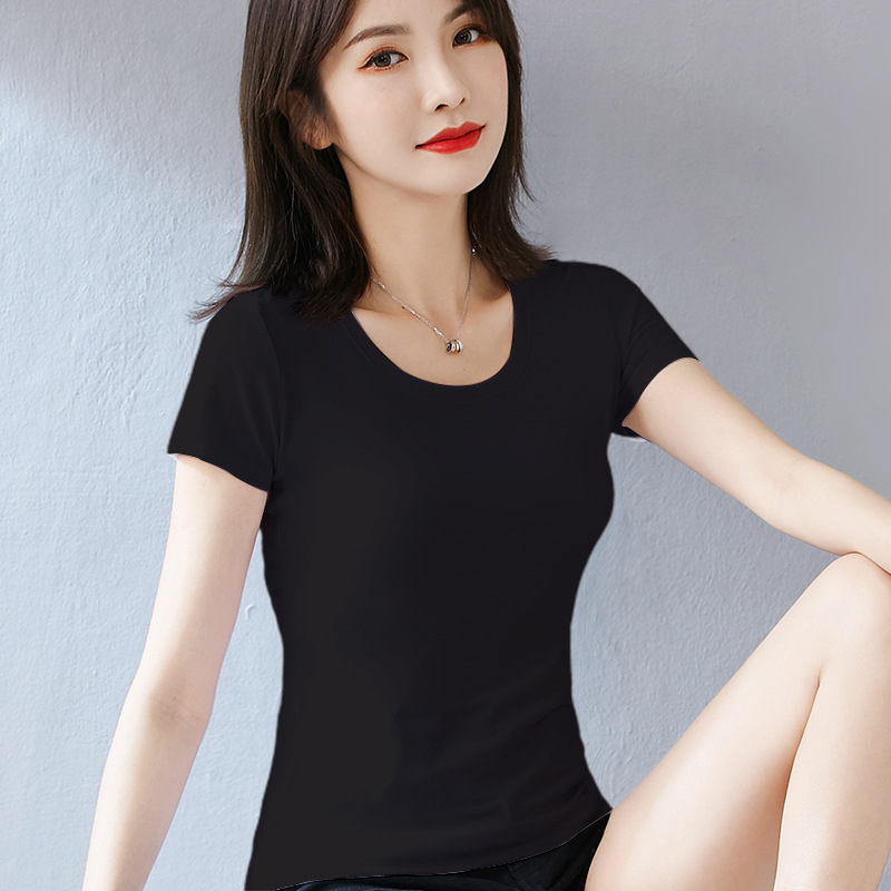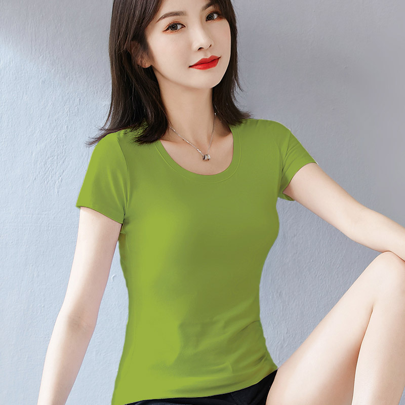 퓨어 코튼 화이트 티셔츠 여성용 반팔 슬림핏 슬리밍 여름 짧은 솔리드 컬러 타이트베이스 셔츠 우아한 내부 탑스토어 가기