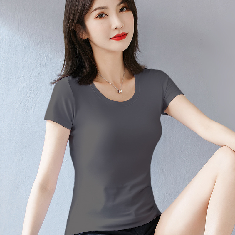 퓨어 코튼 화이트 티셔츠 여성용 반팔 슬림핏 슬리밍 여름 짧은 솔리드 컬러 타이트베이스 셔츠 우아한 내부 탑