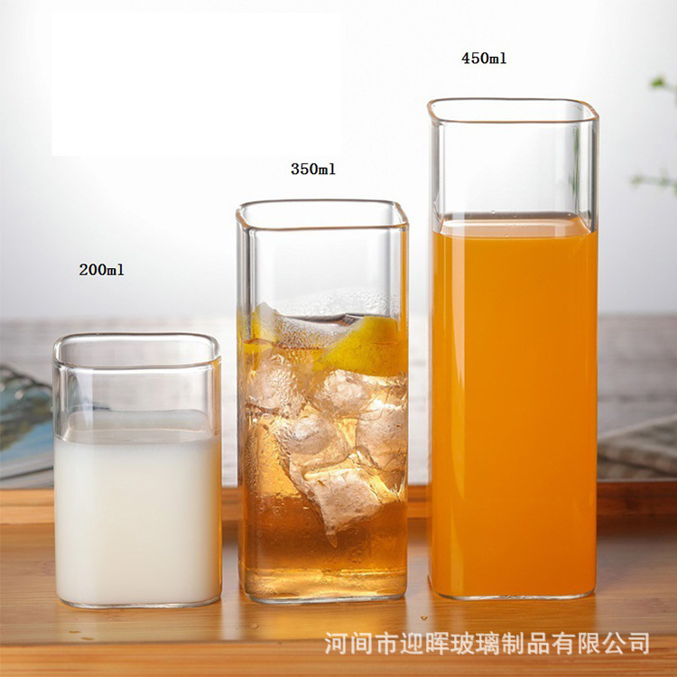 내열 유리컵, 사각형 심플 고붕규산 유리 티컵, 커피컵, 우유컵, 고급스러운 기념품 컵