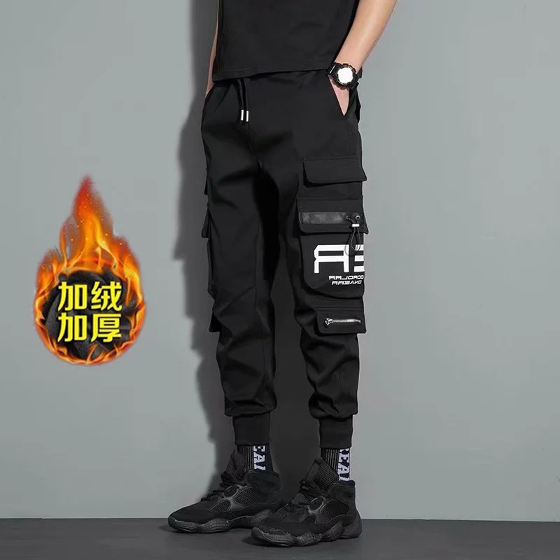 기모 겨울 새로운 크 록 팬츠 남성용 트렌디 브랜드 루즈한 멀티 백 힙합 팬츠 에 스포츠 트렌디 바지스토어 가기