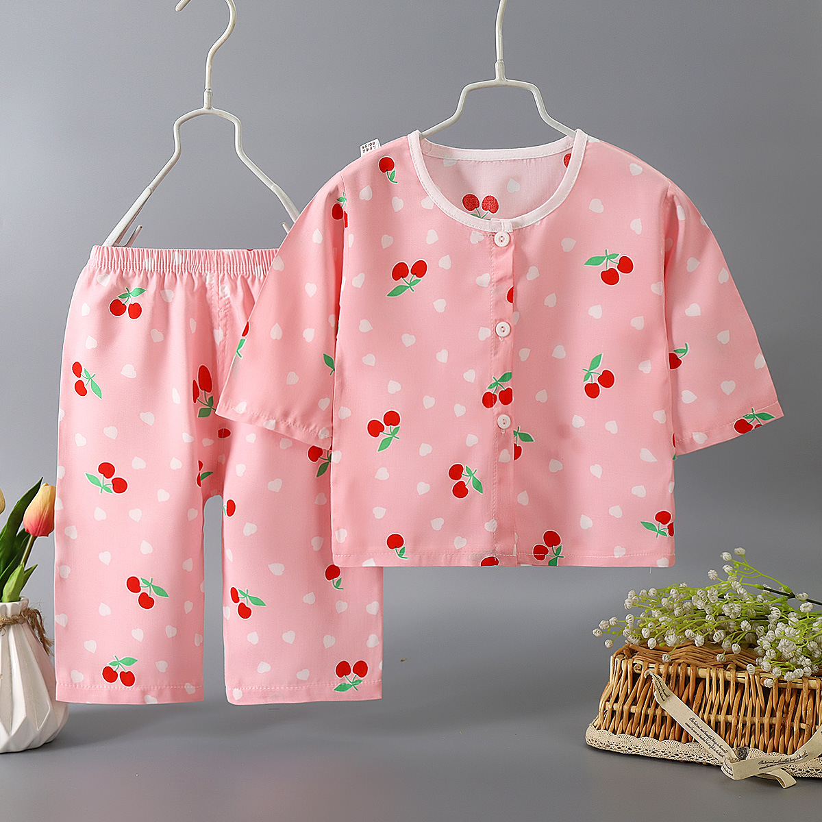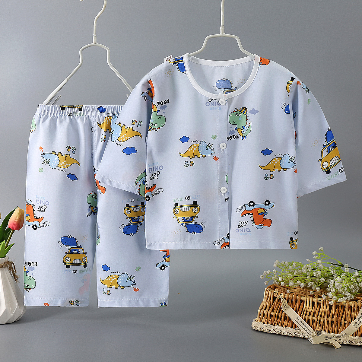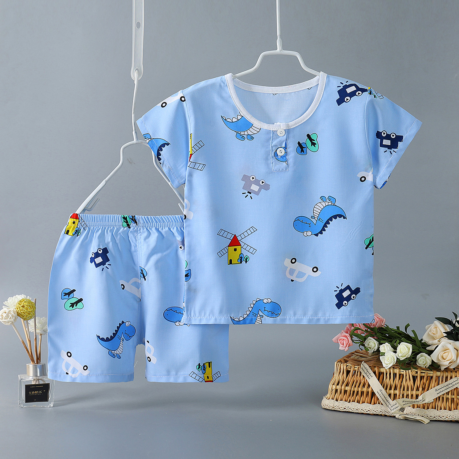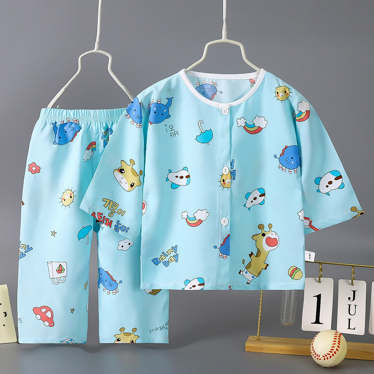어린이 면 실크 잠옷 세트 여름 아기 얇은 카디건 가정 옷 아기 면 실크 에어컨 옷 머리카락의 세대스토어 가기