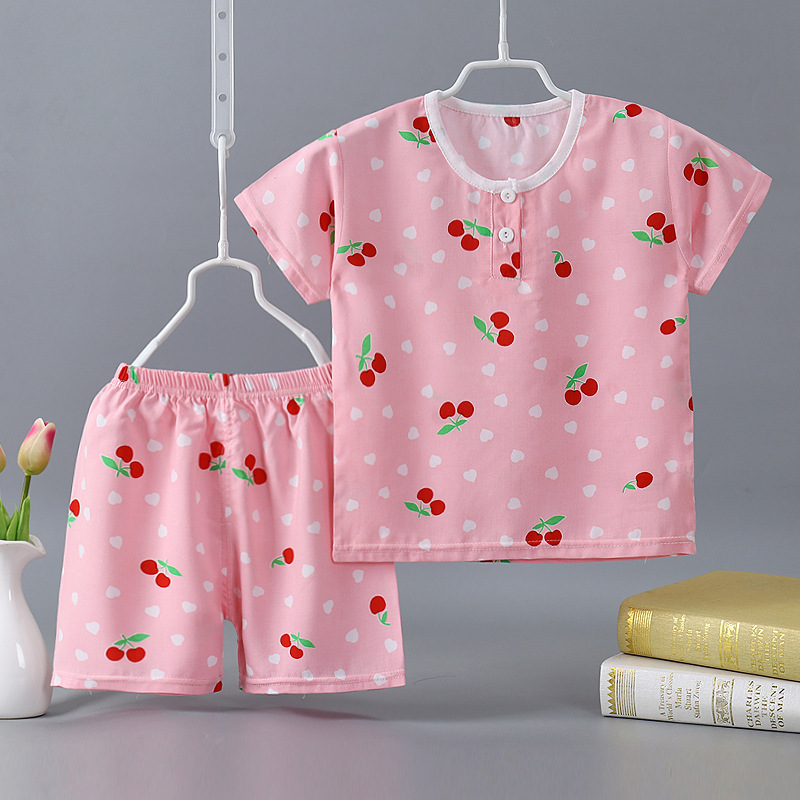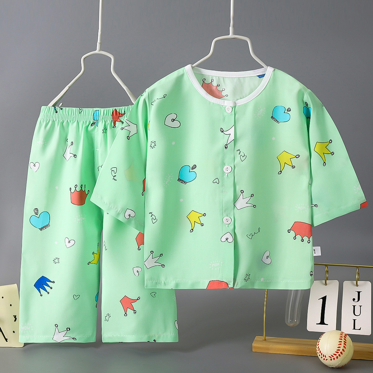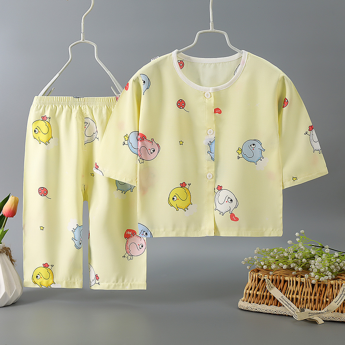 어린이 면 실크 잠옷 세트 여름 아기 얇은 카디건 가정 옷 아기 면 실크 에어컨 옷 머리카락의 세대스토어 가기