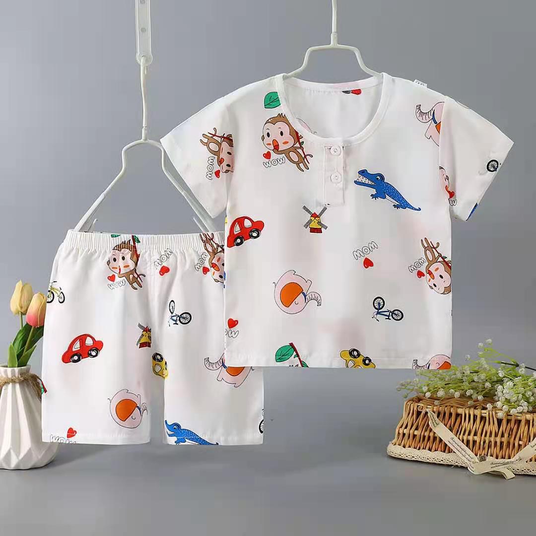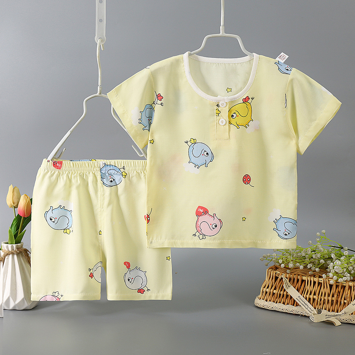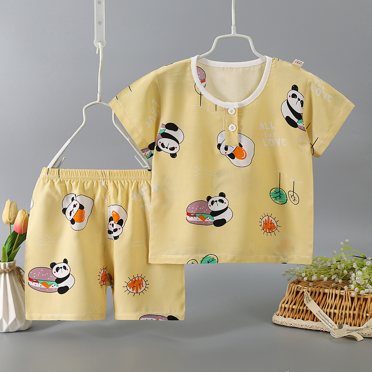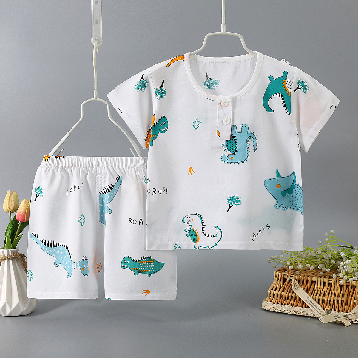 어린이 면 실크 잠옷 세트 여름 아기 얇은 카디건 가정 옷 아기 면 실크 에어컨 옷 머리카락의 세대스토어 가기