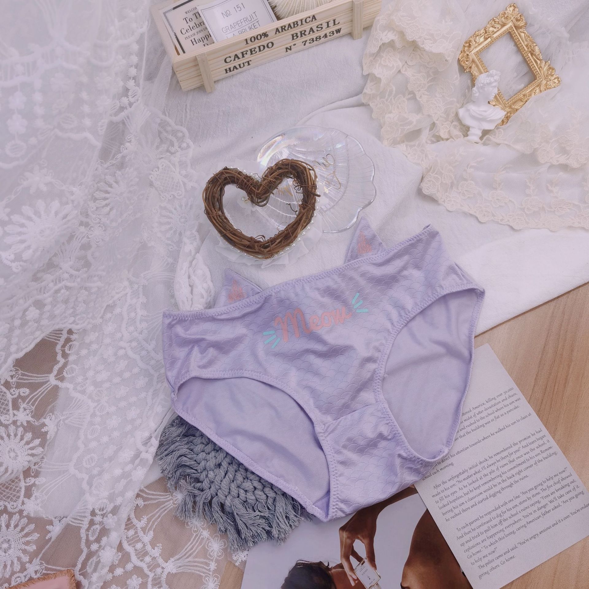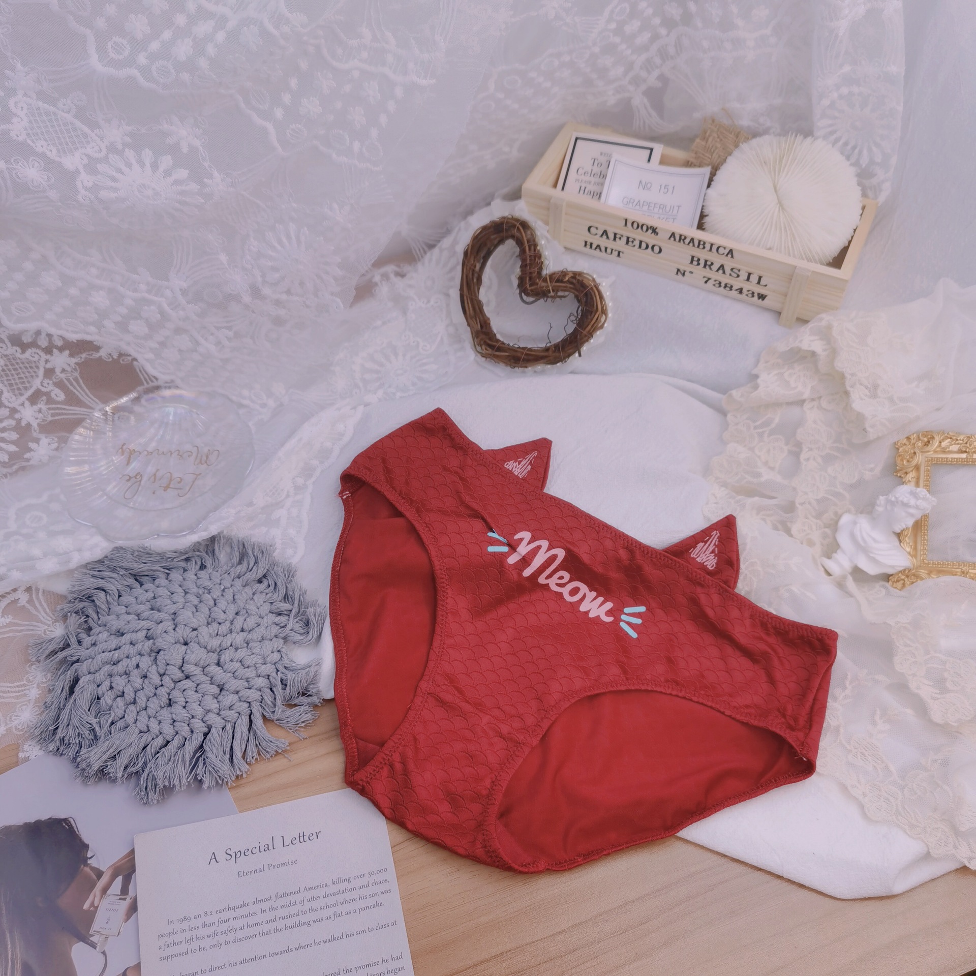 6708 # 귀여운 만화 아이스 실크 속옷 여성용 새틴 패브릭 고양이 귀 일본과 한국 소녀 중간 허리 엉덩이 팬티