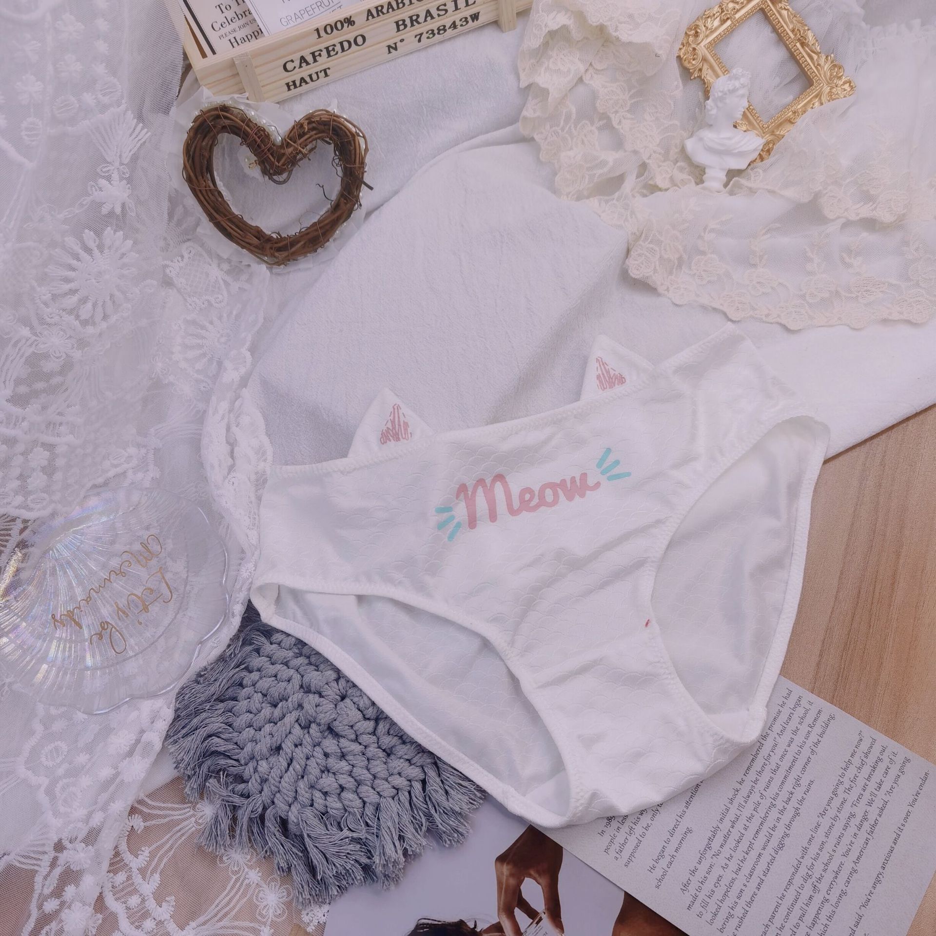 6708 # 귀여운 만화 아이스 실크 속옷 여성용 새틴 패브릭 고양이 귀 일본과 한국 소녀 중간 허리 엉덩이 팬티스토어 가기