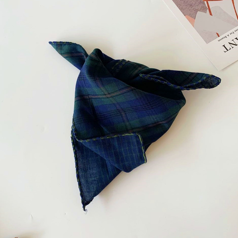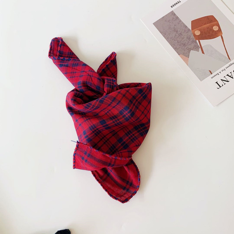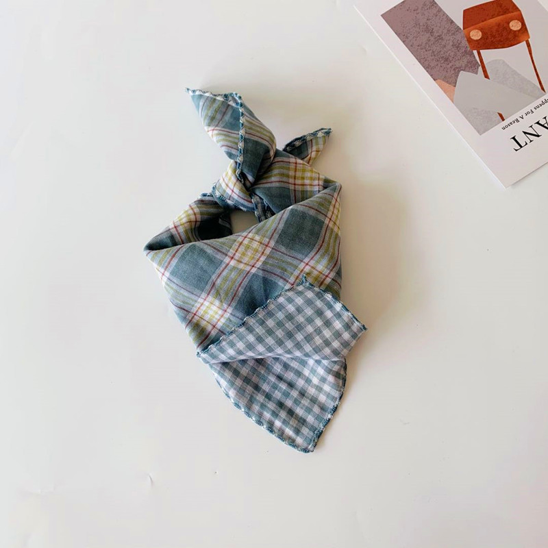 J384ins风儿童格子小方巾双面凹凸造型宝宝小领巾三角四方口水巾