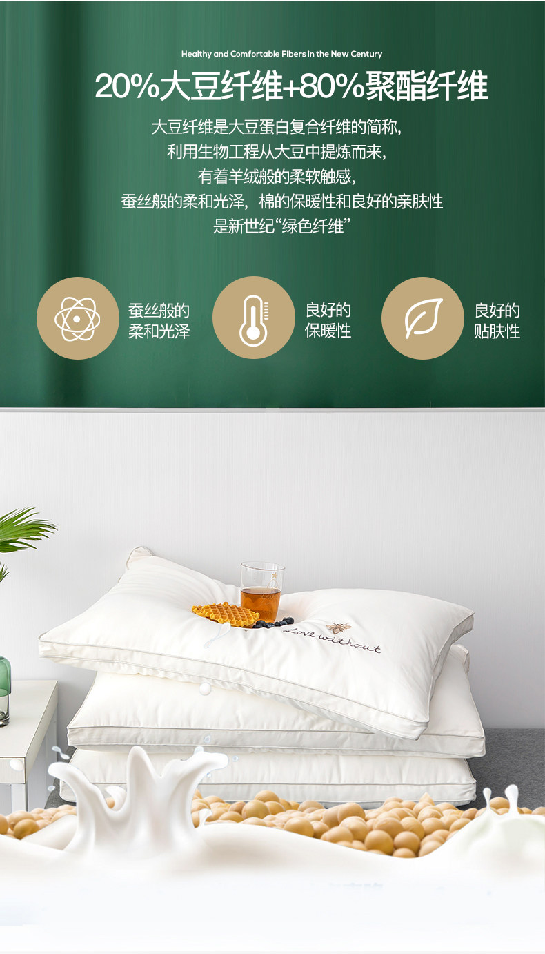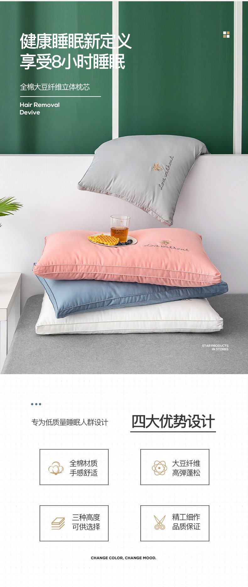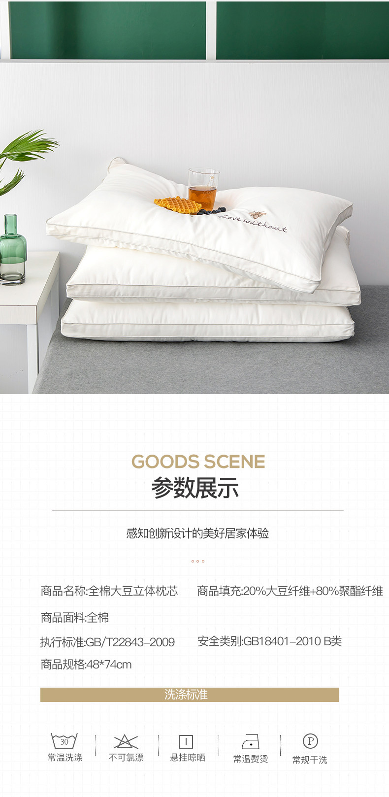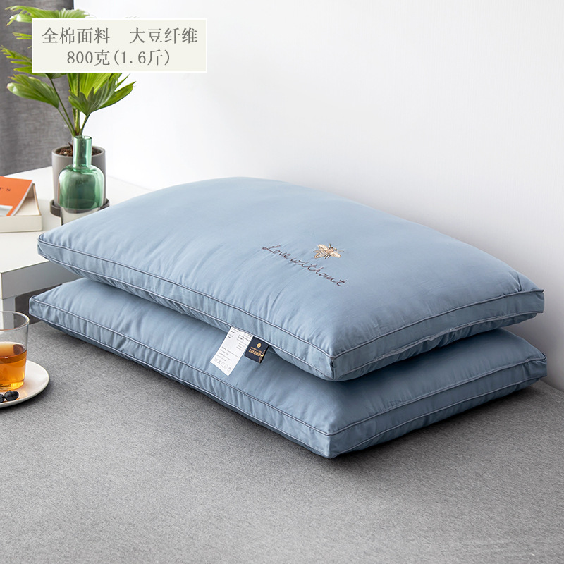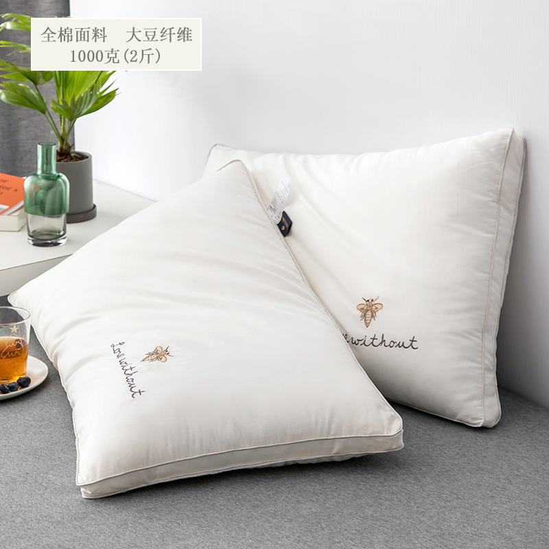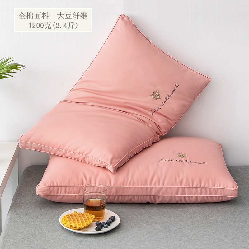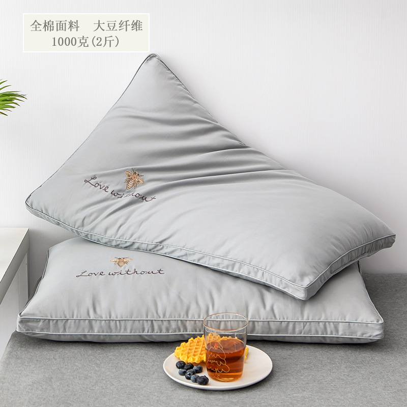 면 자수 콩 섬유 베개 단일 경추 높고 낮은 베개 부드러운 빠른 반발 간단한 베개 코어