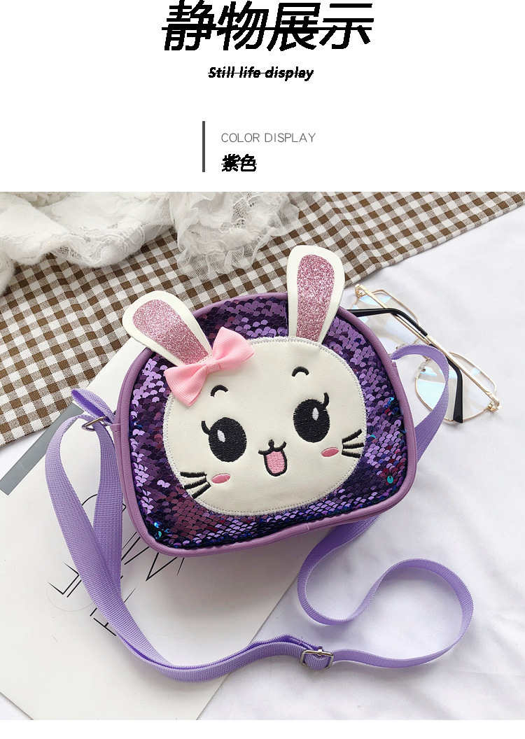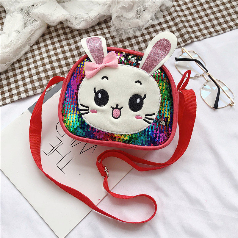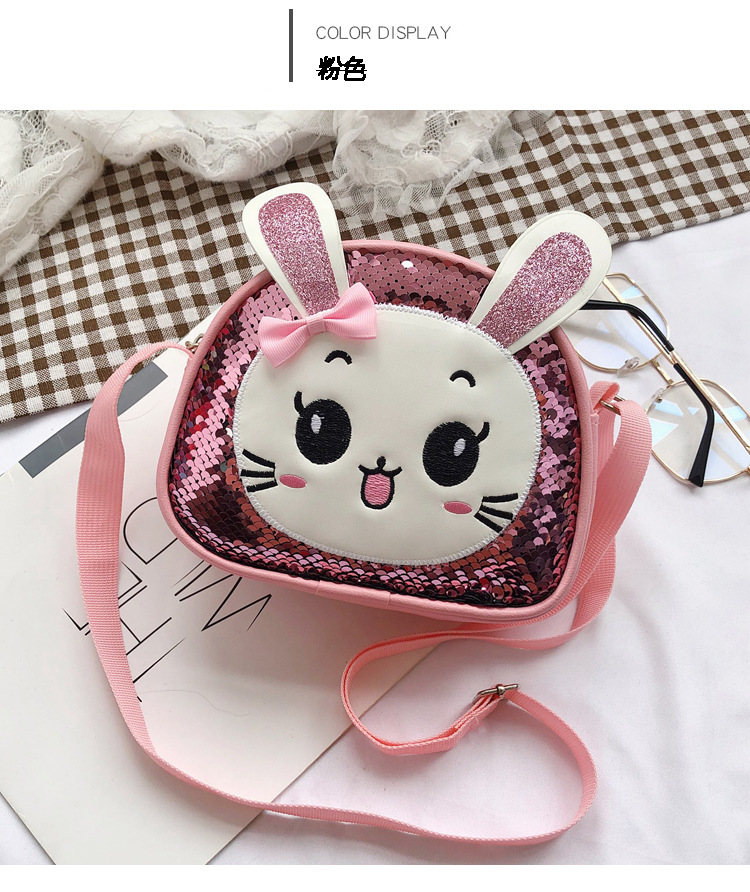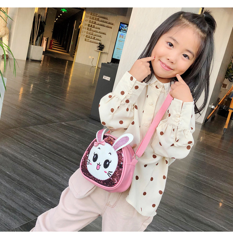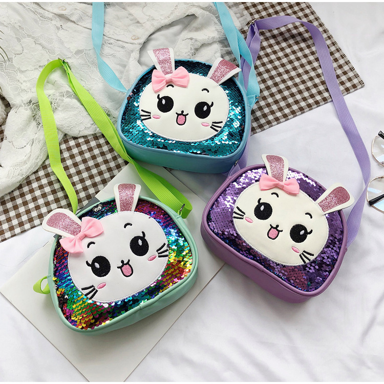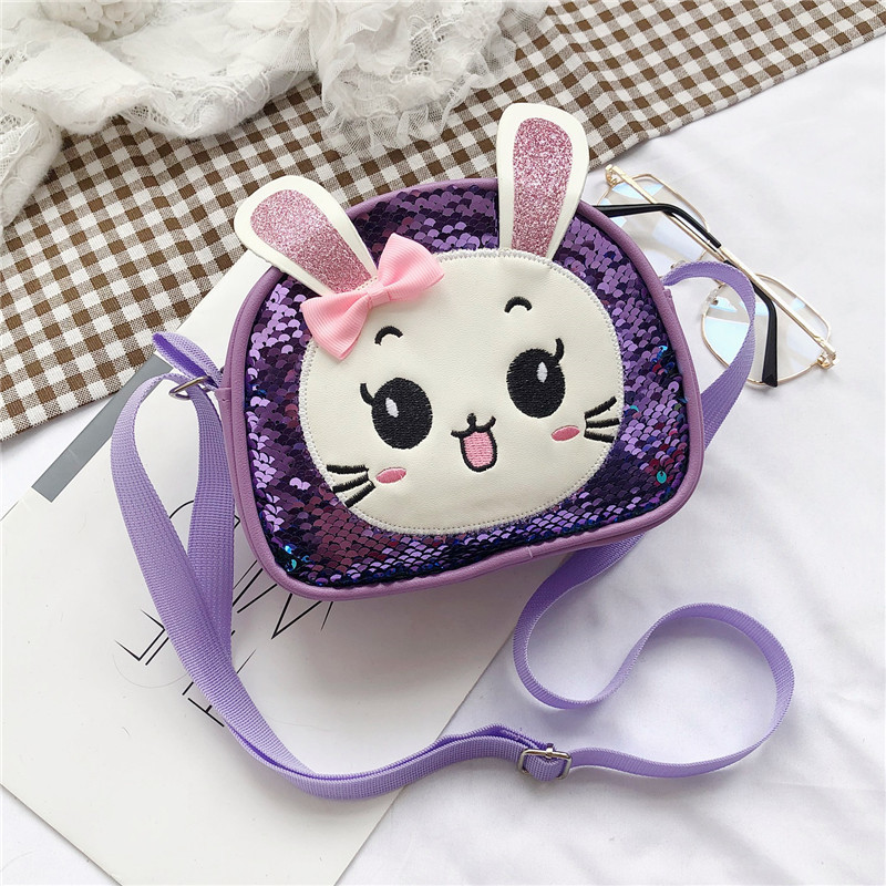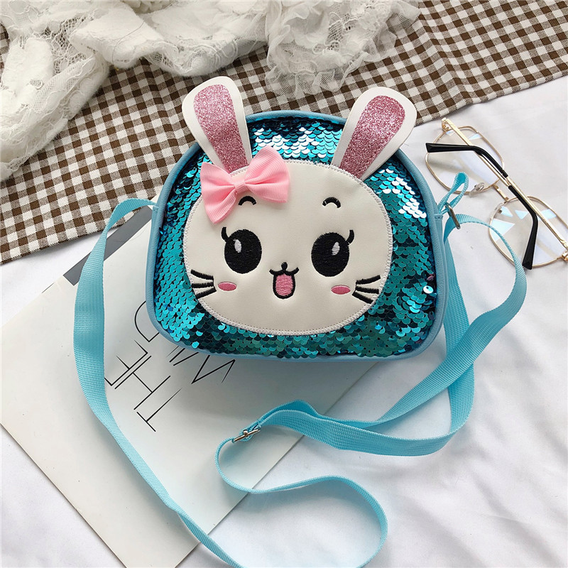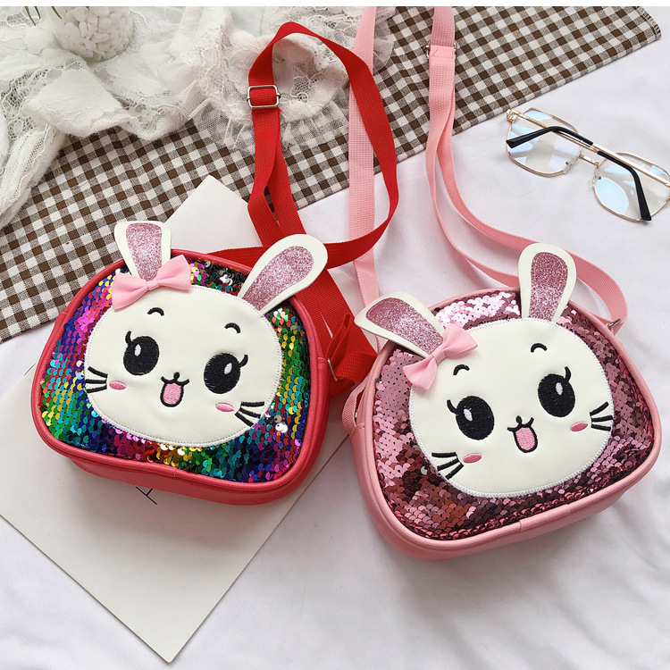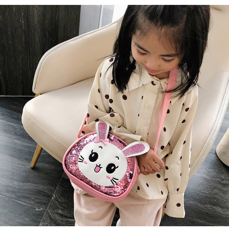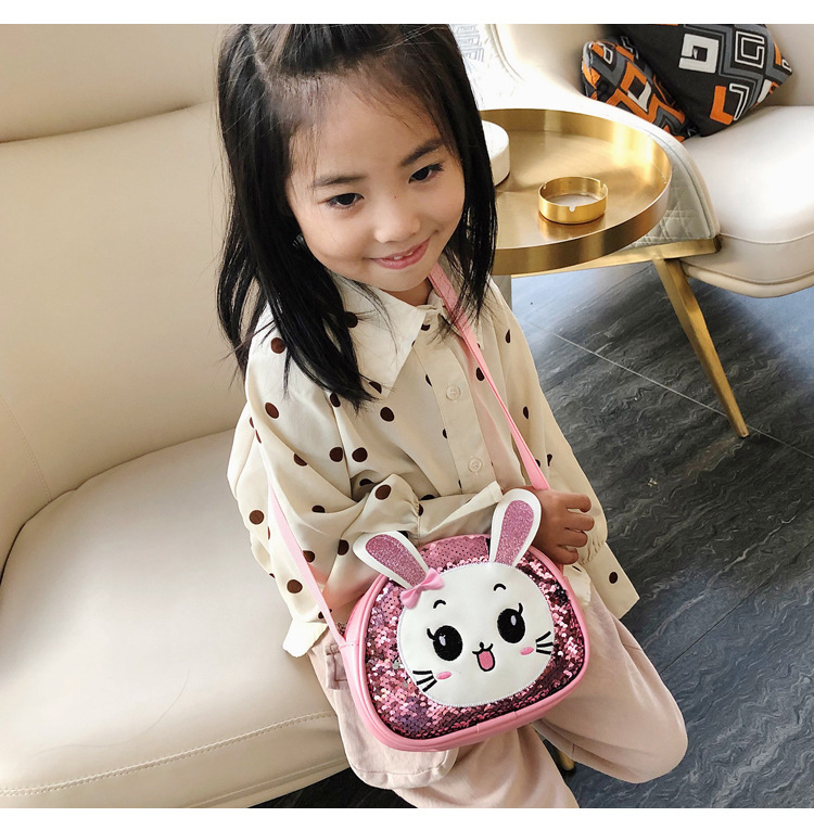 새로운 어린이 가방 한국 만화 스팽글 토끼 소녀 어깨 크로스 바디 가방 귀여운 패션 휴대 전화 동전 지갑스토어 가기