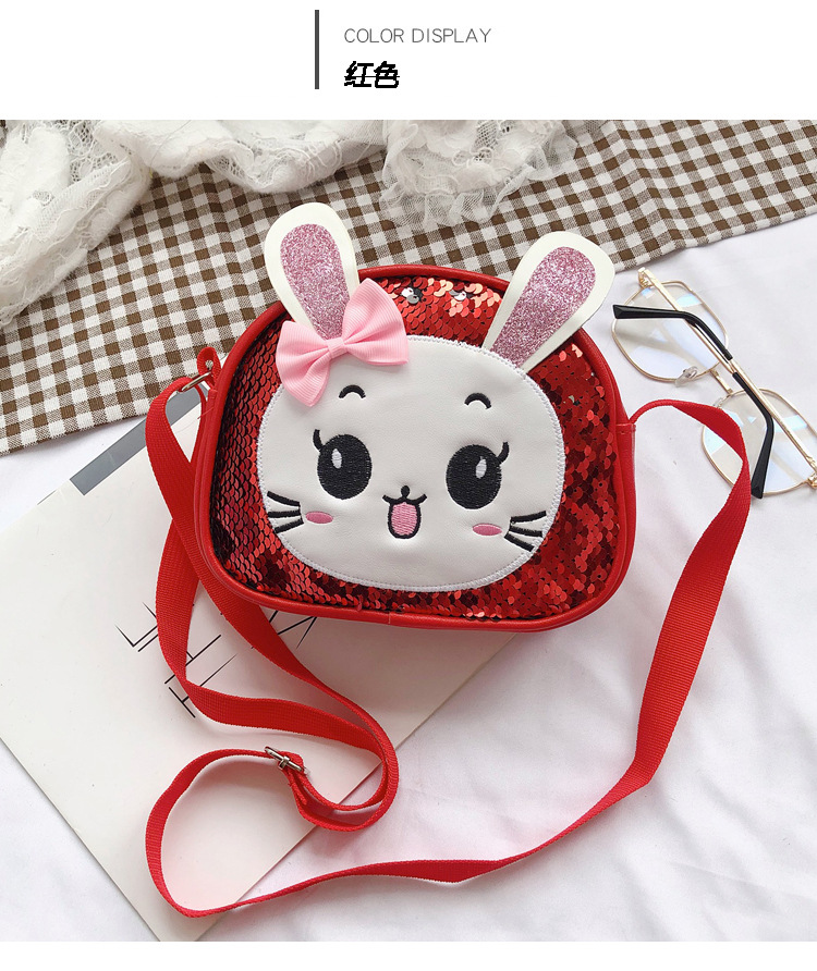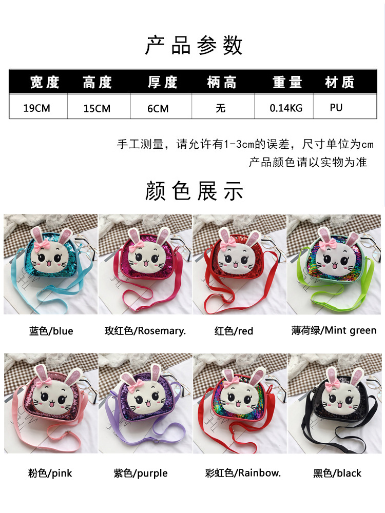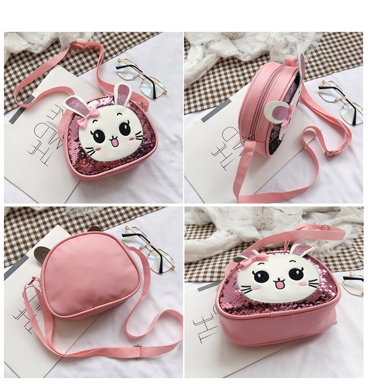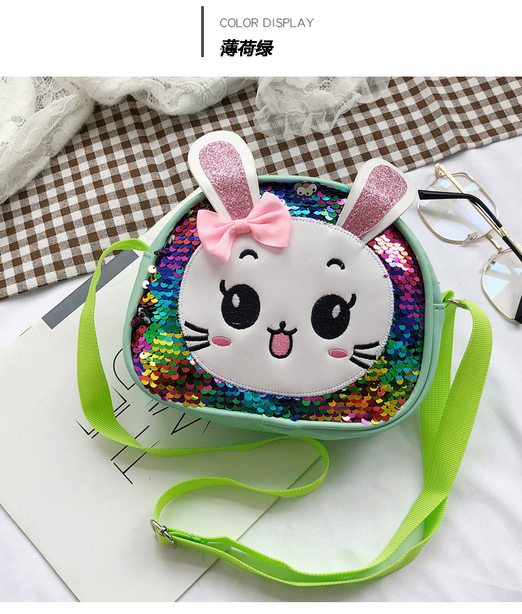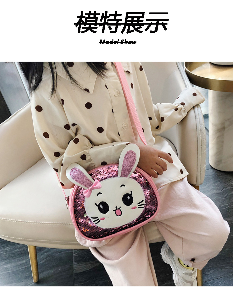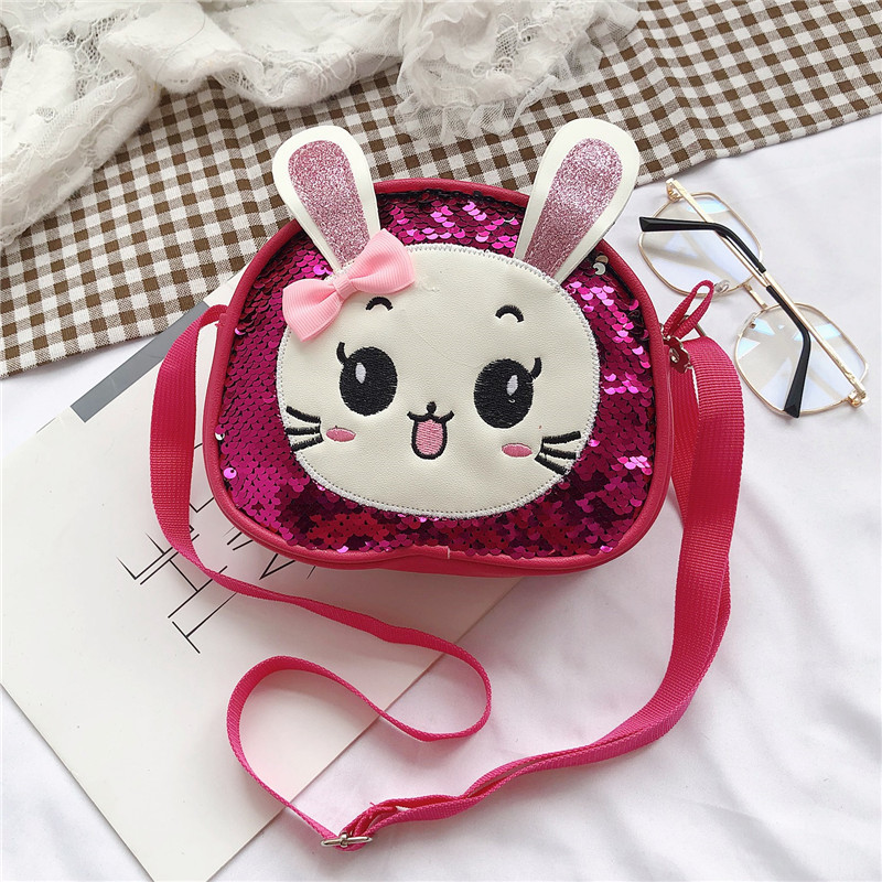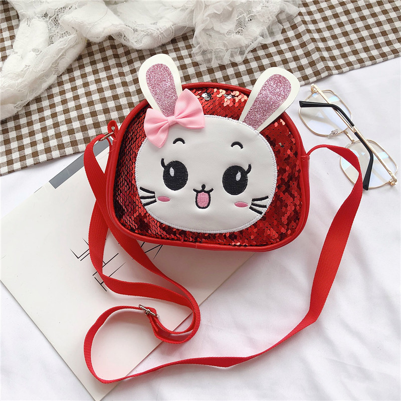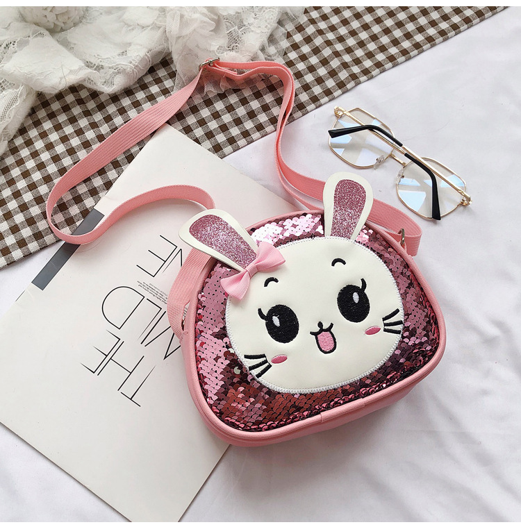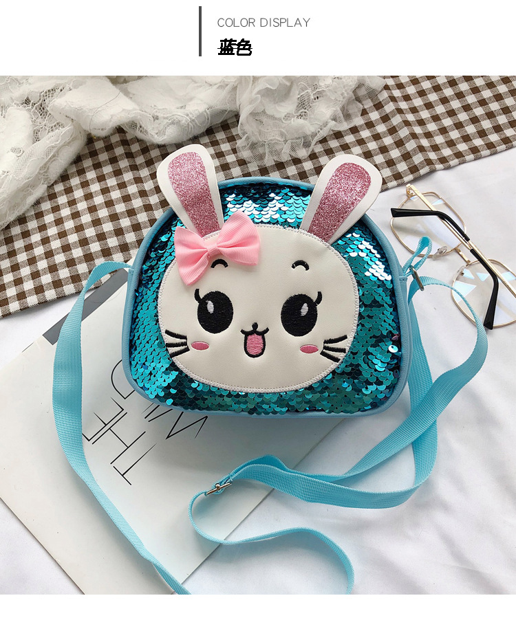 새로운 어린이 가방 한국 만화 스팽글 토끼 소녀 어깨 크로스 바디 가방 귀여운 패션 휴대 전화 동전 지갑스토어 가기