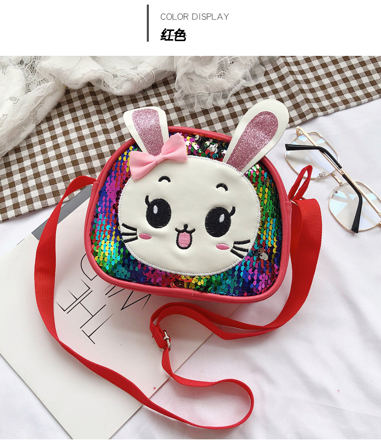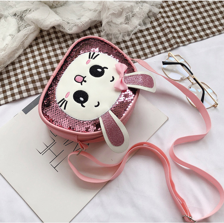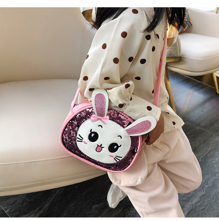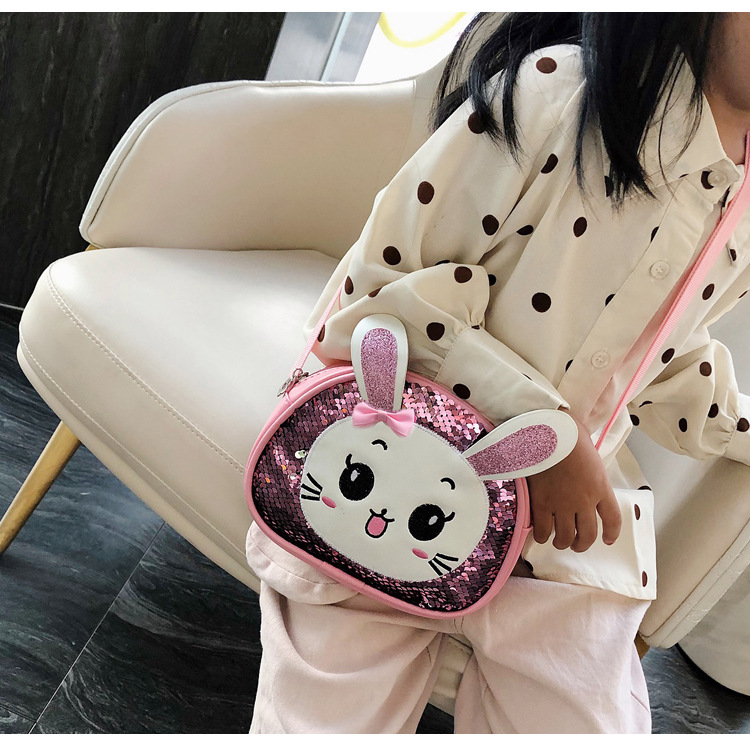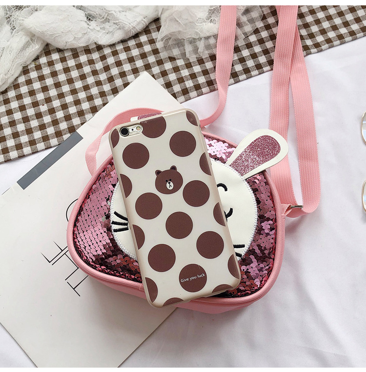 새로운 어린이 가방 한국 만화 스팽글 토끼 소녀 어깨 크로스 바디 가방 귀여운 패션 휴대 전화 동전 지갑