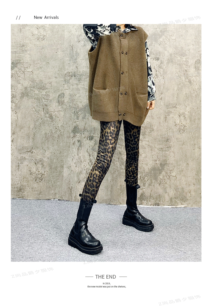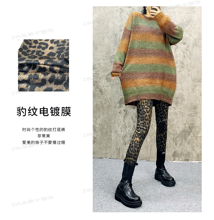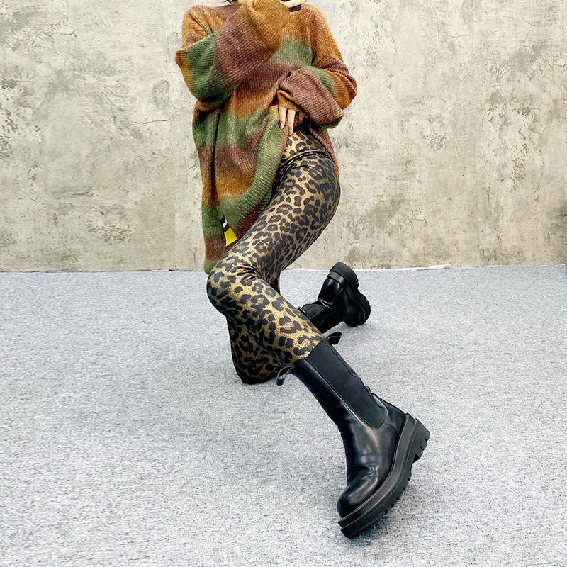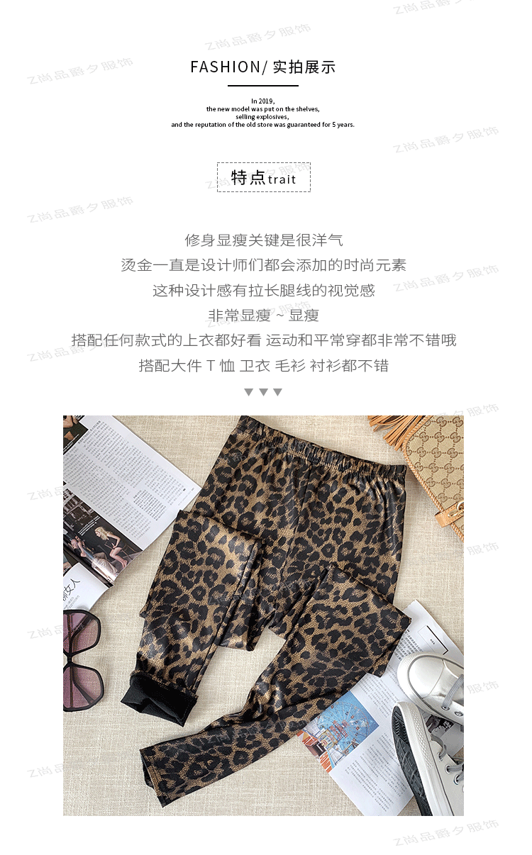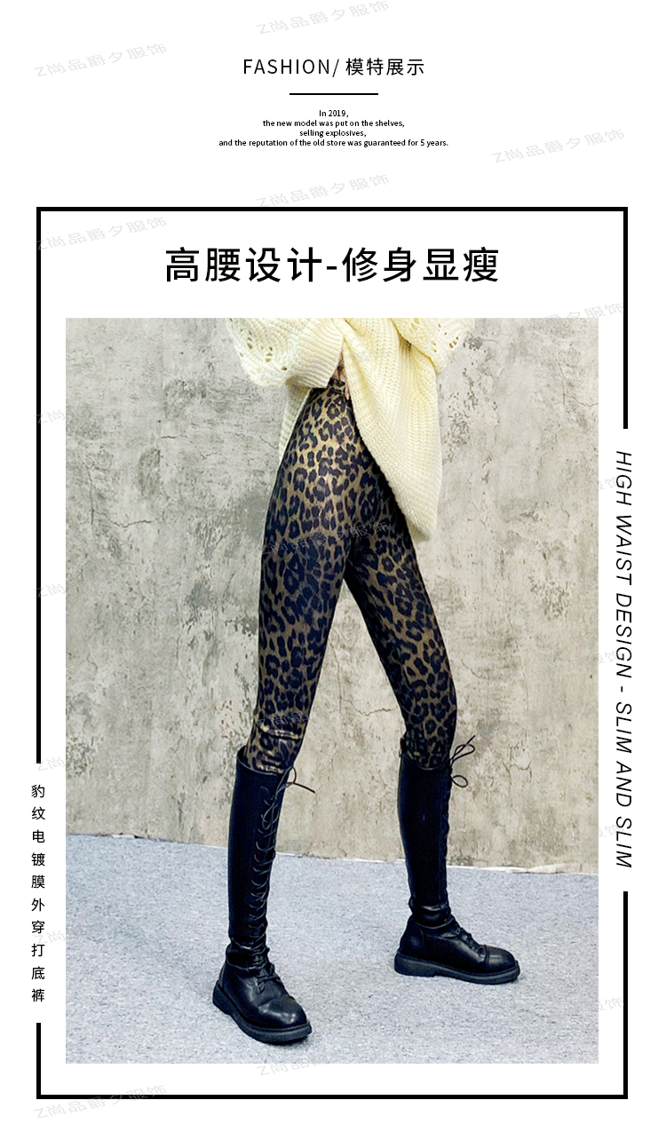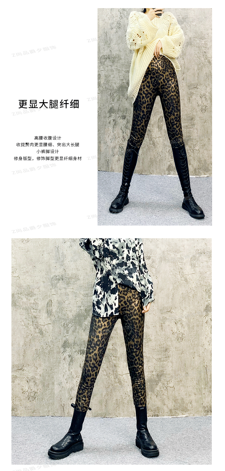 하이웨이스트 레깅스 여성 유럽 스타일 레오파드 프린트 탄력 슬림핏 9부 팬츠 트렌디 롱 팬츠 외출용스토어 가기