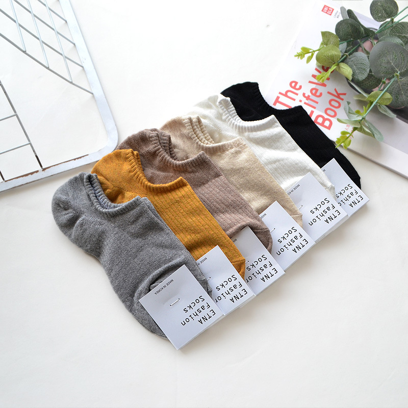 0 단색 세로 줄무늬 숏 웨이스트 보트삭스 한국 양말 ETNA 일본식 심플 여성용 얕은 입구 면 양말 원피스 드롭쉬핑