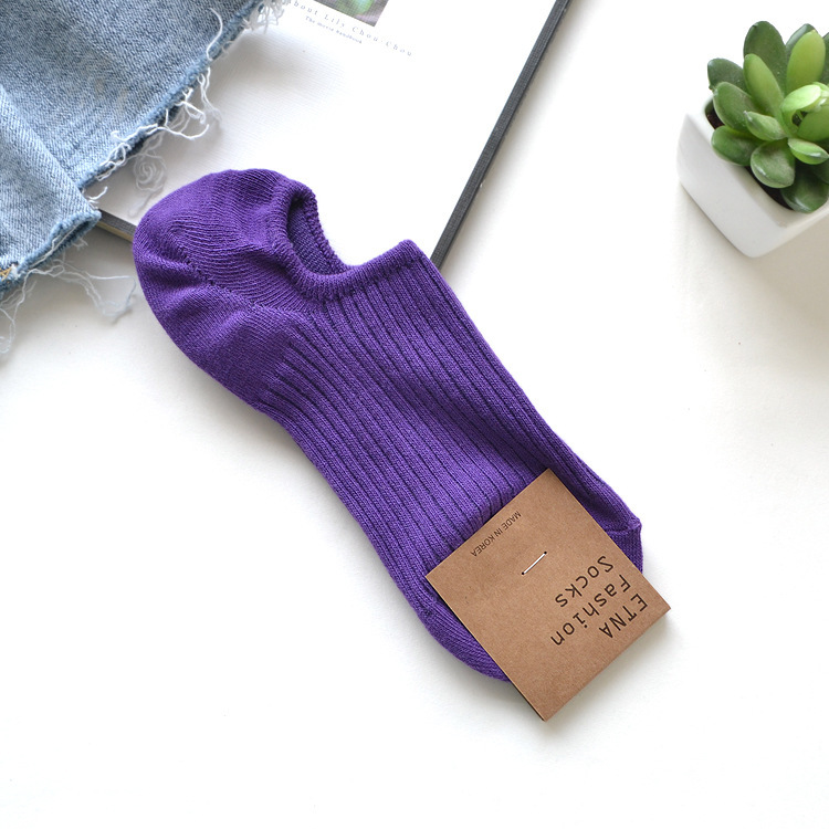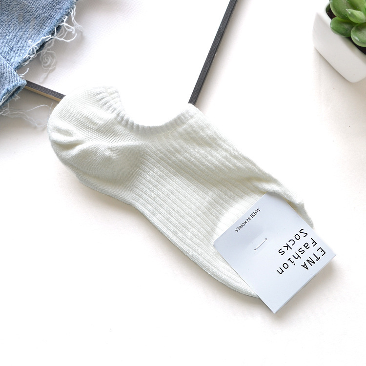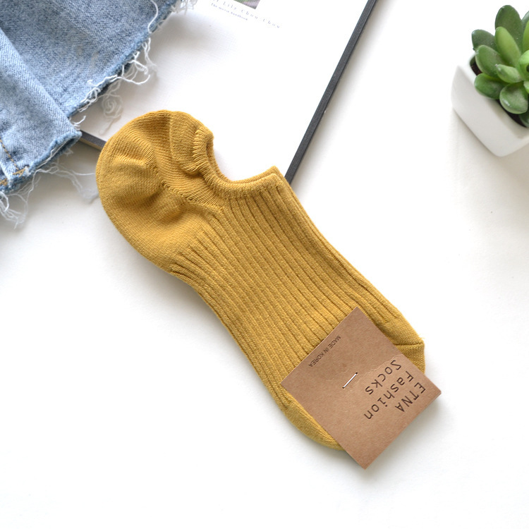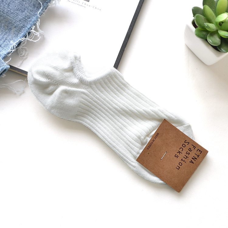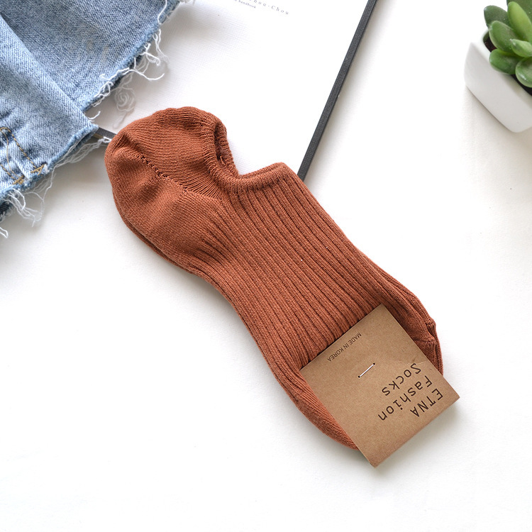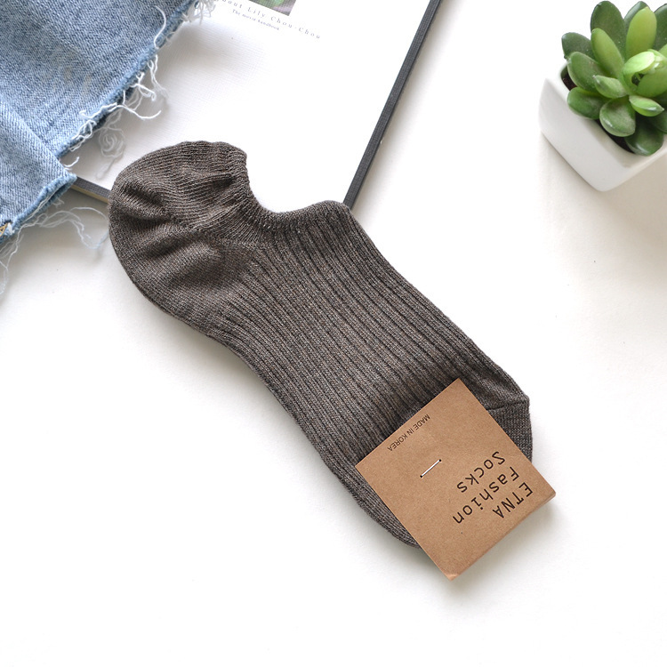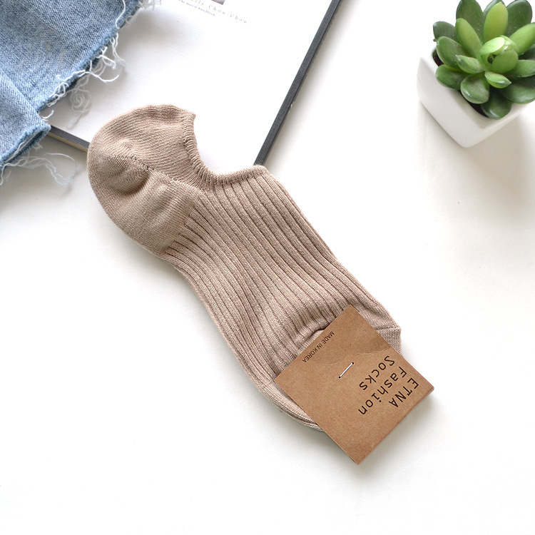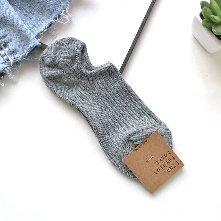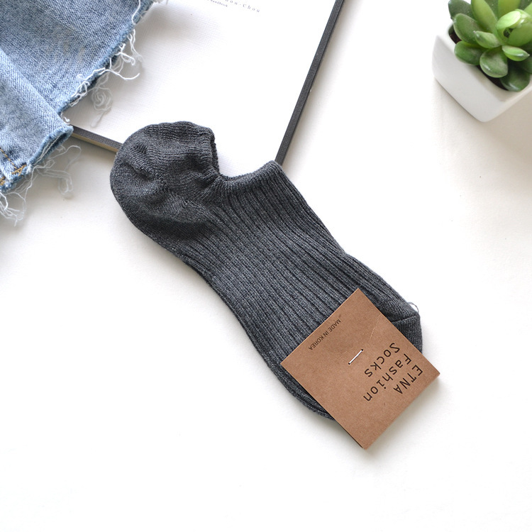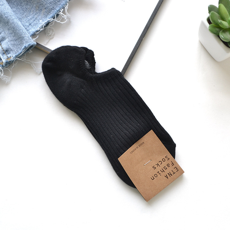 0 단색 세로 줄무늬 숏 웨이스트 보트삭스 한국 양말 ETNA 일본식 심플 여성용 얕은 입구 면 양말 원피스 드롭쉬핑스토어 가기