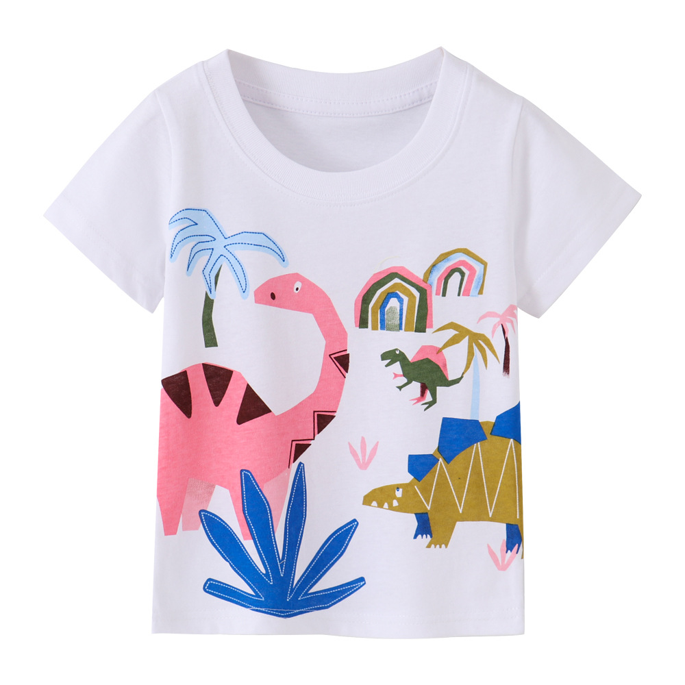 2024 여름 유럽과 미국 스타일의 아동복 아동용 티셔츠 둥근 목 인쇄 짧은 소매 니트 소년의베이스 셔츠 면스토어 가기