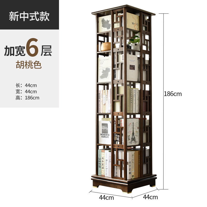 Jiayi 단단한 나무 책장 회전 책장 360 도 모바일 책장 거실 바닥 수납 랙 조명 고급 보관 책장스토어 가기