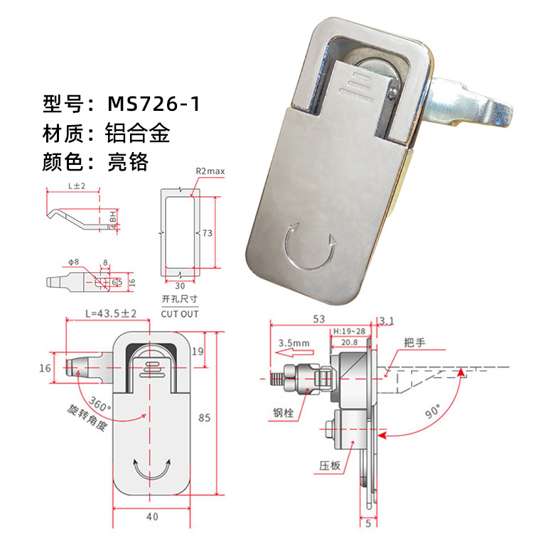 主要经营:转舌锁系列(MS705配电柜锁),圆柱锁,平面锁,执手锁,柜锁,铰链,铰键,把手,搭扣,不锈钢合页,支架,连接件,插销等各种柜体门锁紧固件生产制造。