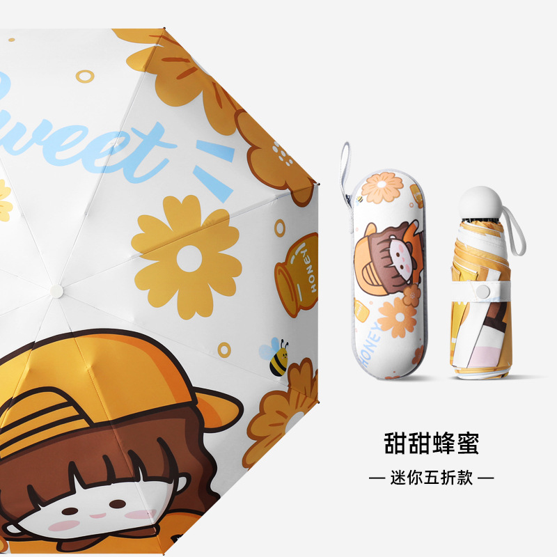 도매 자외선 차단 태양 우산 소형 휴대용 5 중 우산 접이식 자동 양산 우산 커스텀 다수