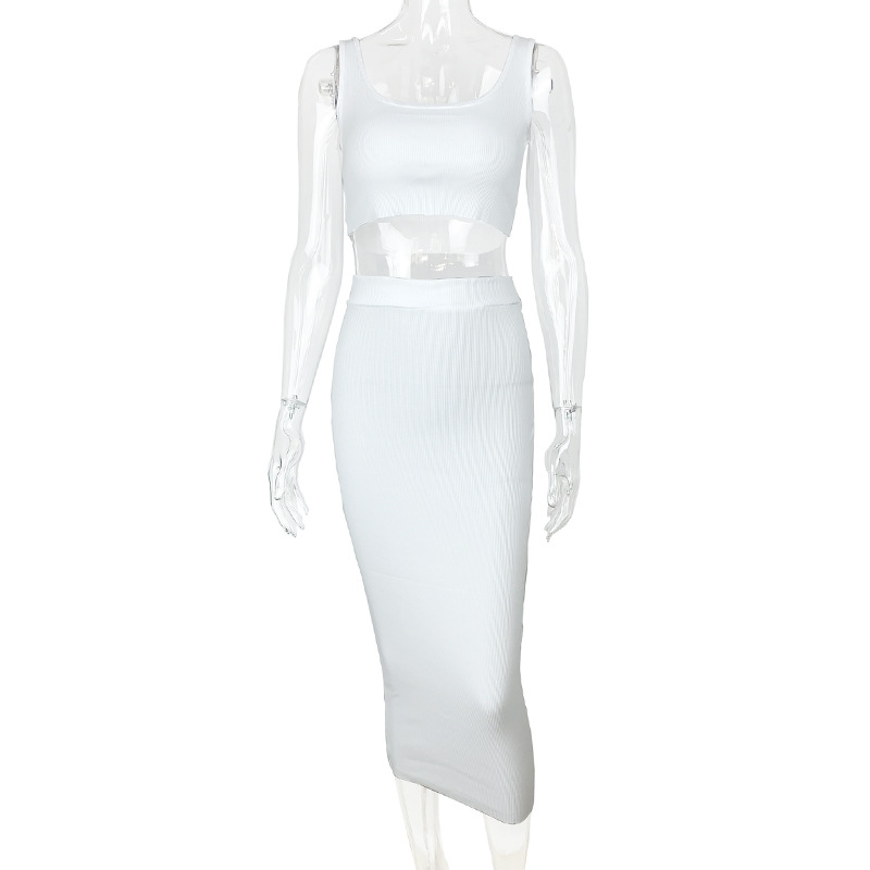 여름 2022 새로운 대외 무역 유럽과 미국 여성의 섹시한 조끼 2 피스 배꼽 짧은 탑 튀김 거리 원피스스토어 가기