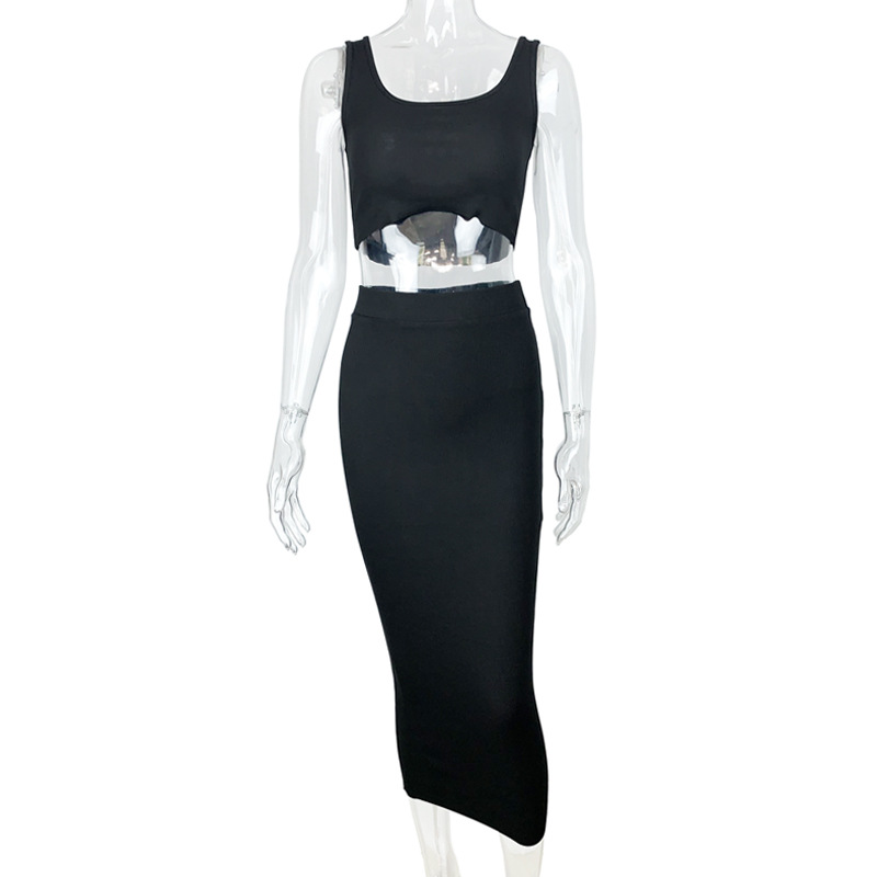 여름 2022 새로운 대외 무역 유럽과 미국 여성의 섹시한 조끼 2 피스 배꼽 짧은 탑 튀김 거리 원피스