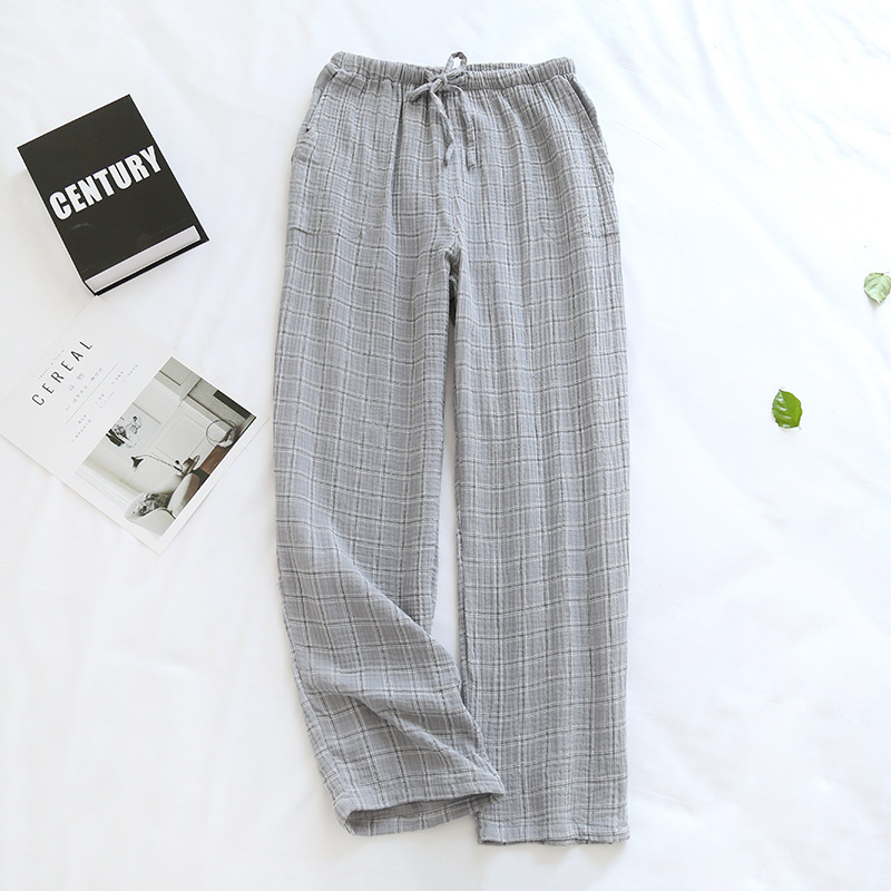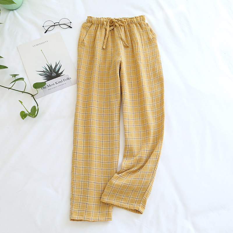 새로운 커플 크레이프 격자 무늬 홈 팬츠 남성과 여성의 플러스 사이즈 잠옷 바지 심플 스타일 캐주얼 바지 면사 사계절 바지