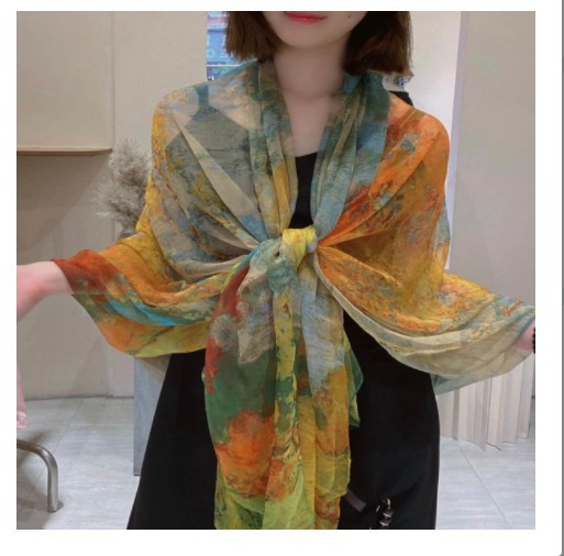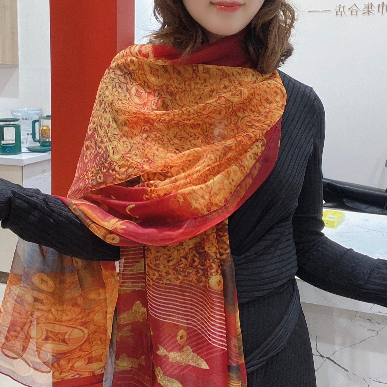 봄과 여름 새로운 Yourou 원사 자외선 차단제 숄 라이브 방송 클래식 모조 실크 롱 스카프 패션 모든 매치 스카프 숄스토어 가기