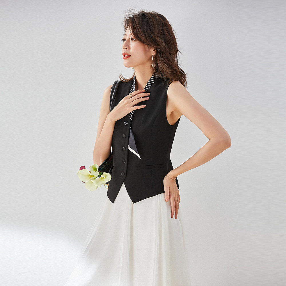 面料挺括度适中,厚度适中,保留西服板正的同时也能满足春夏的清爽。黑白色可以搭配任何的颜色哦~