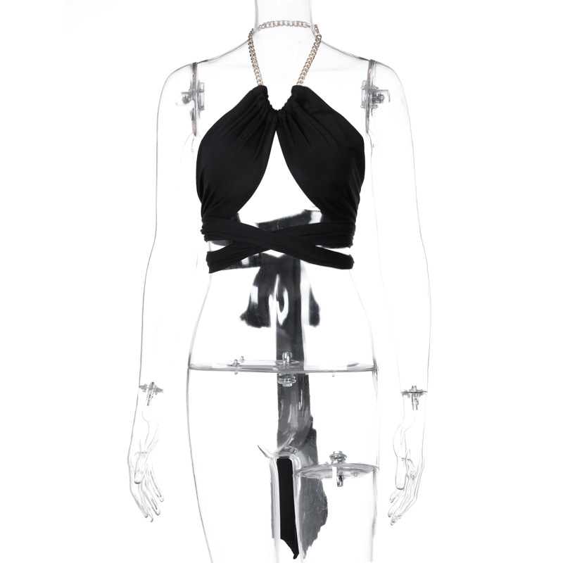 유럽과 미국 스타일의 섹시한 교수형 목 튜브 상단 2024 봄과 여름 새로운 중공 백 스트랩 기본 작은 조끼 대외 무역 도매