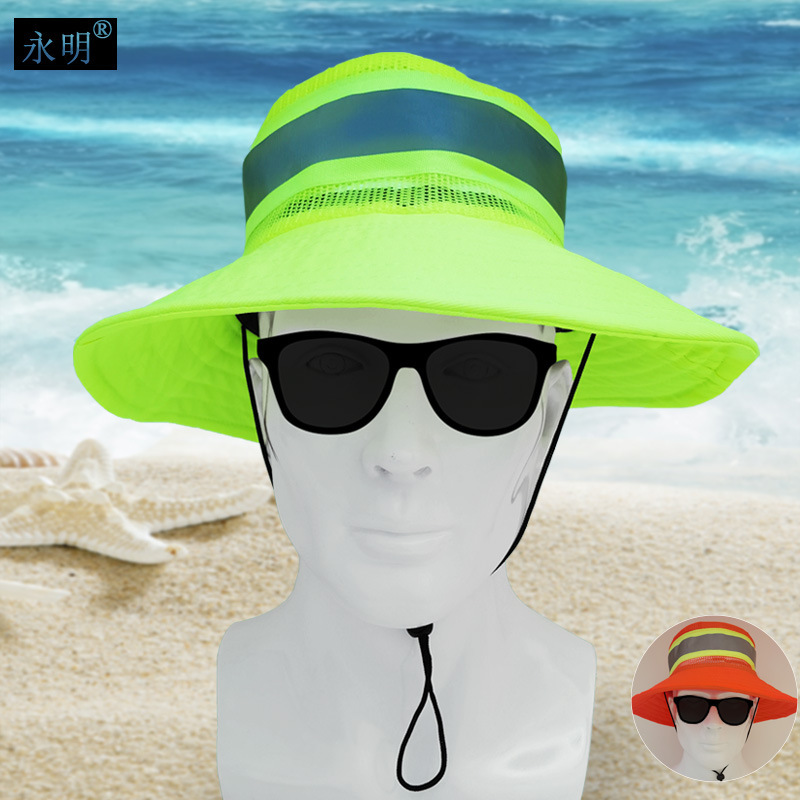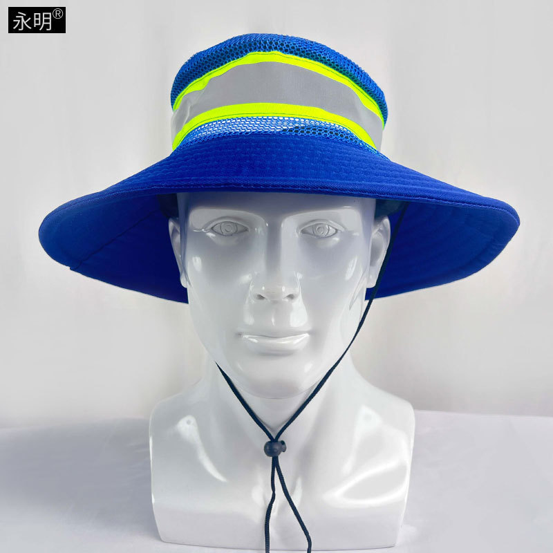 여름 통기성 메쉬 모자 위생 노동자 태양 모자 정원 청소 야외 태양 보호 태양 모자 반사 스트립 노동 보호 모자