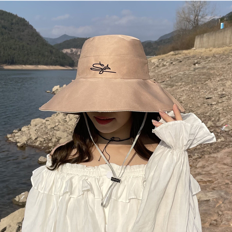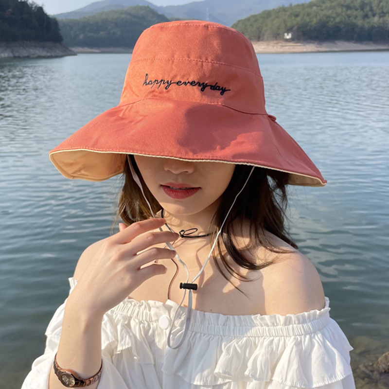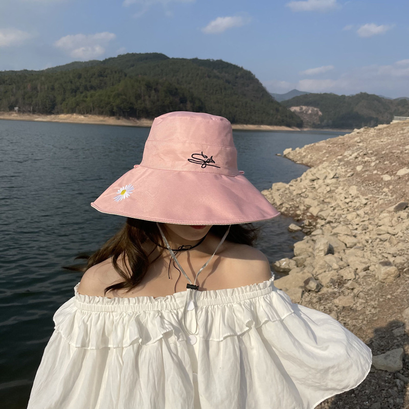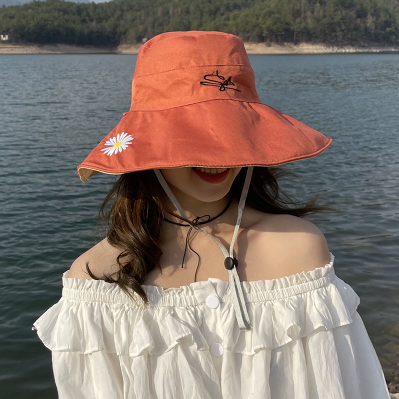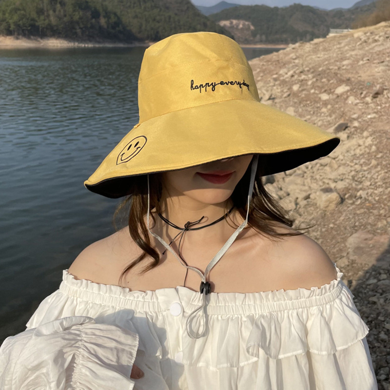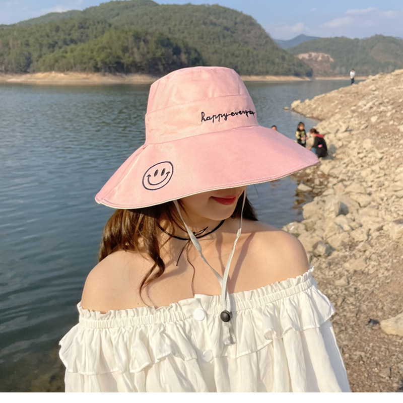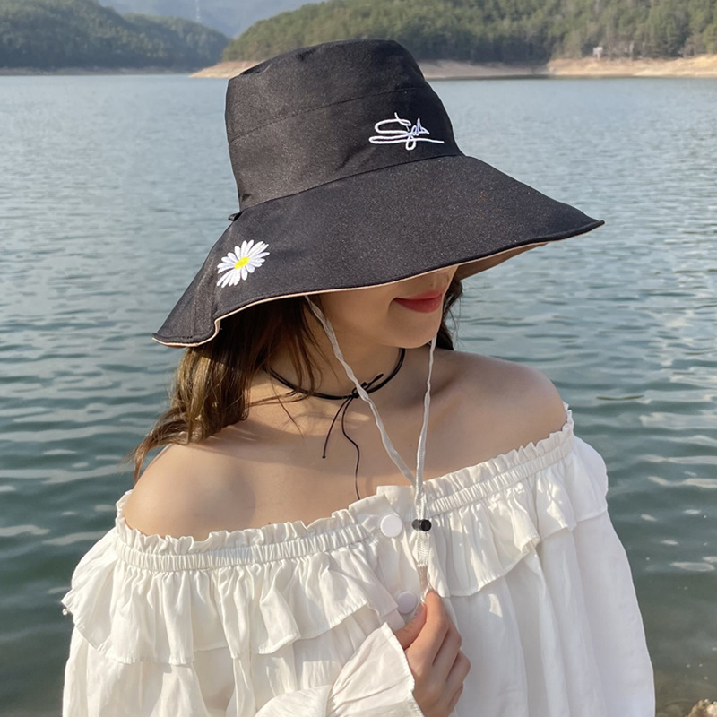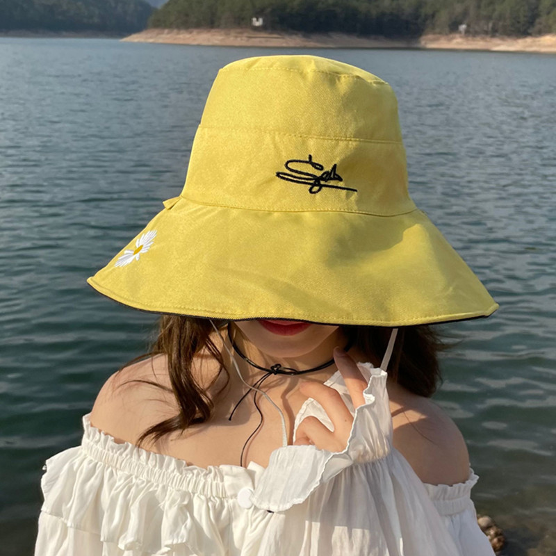 여름 양면 썬 스크린 어부 모자 여성용 큰 챙 스마일 데이지 넓은 챙 모자 패션 한국 분지 모자