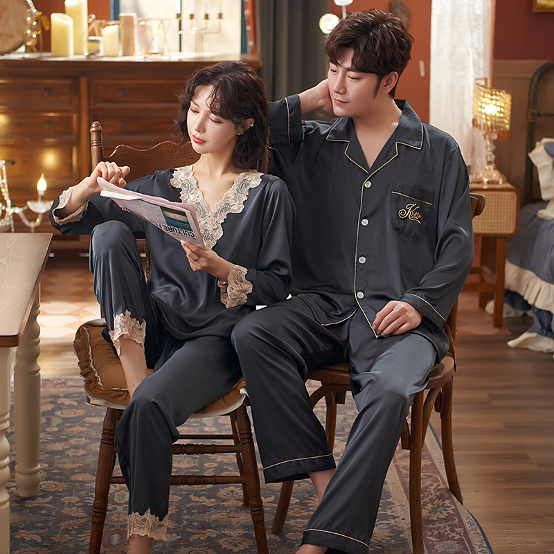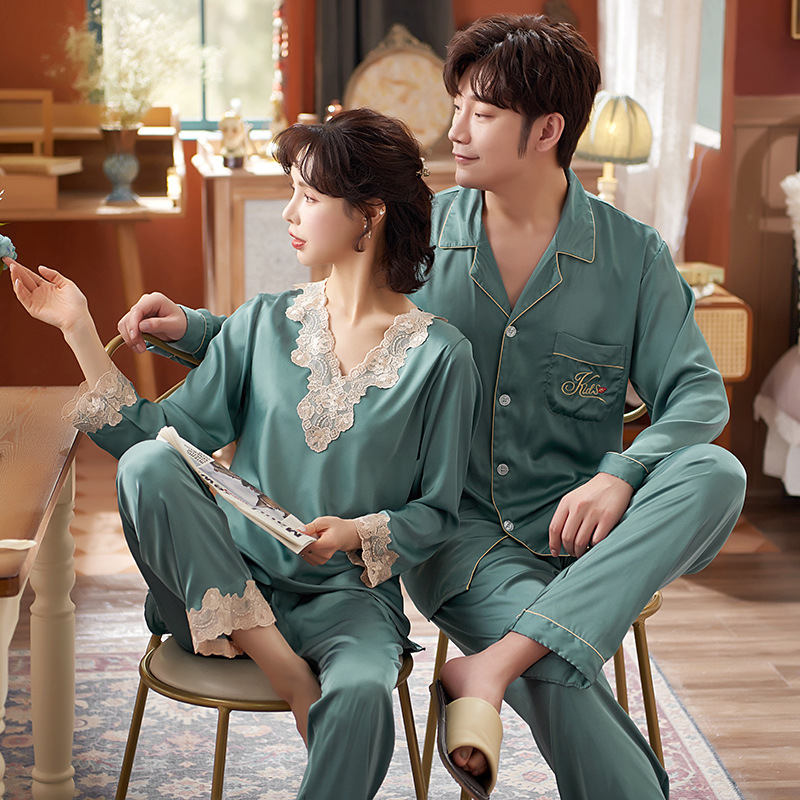 결혼식 커플 잠옷 봄과 가을 빨간 여자의 얼음 실크 남자의 긴 소매 실크 가족 년 신혼 가정 옷 세트스토어 가기