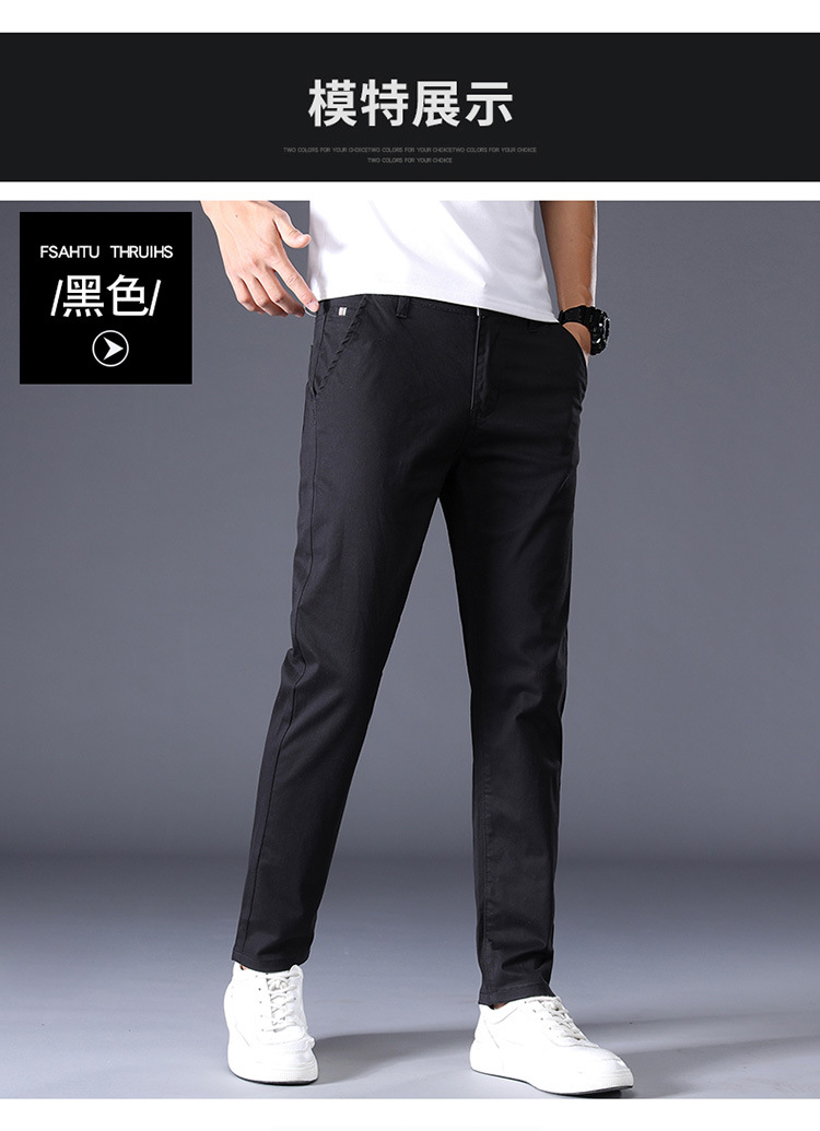 봄 신상 남성 블랙 캐주얼 바지 한국 유행 스몰 스트레이트 팬츠 남성 탄성 만능 슬림핏 팬츠스토어 가기