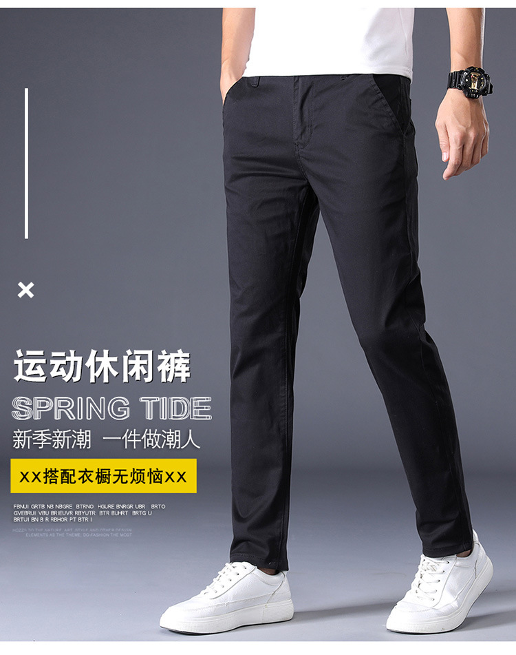 봄 신상 남성 블랙 캐주얼 바지 한국 유행 스몰 스트레이트 팬츠 남성 탄성 만능 슬림핏 팬츠
