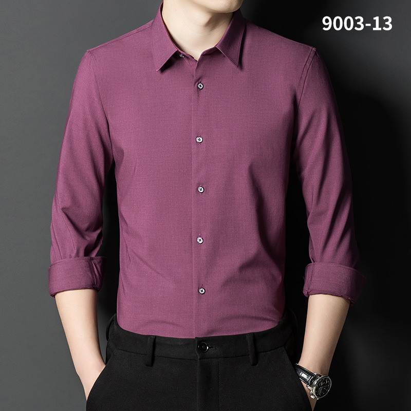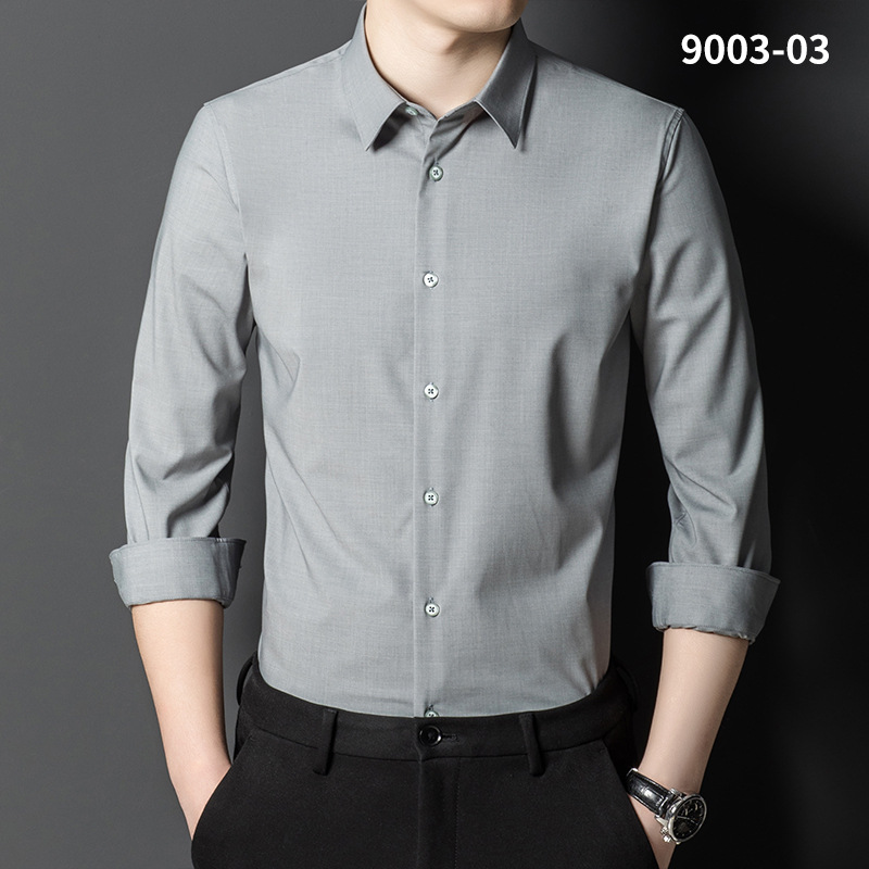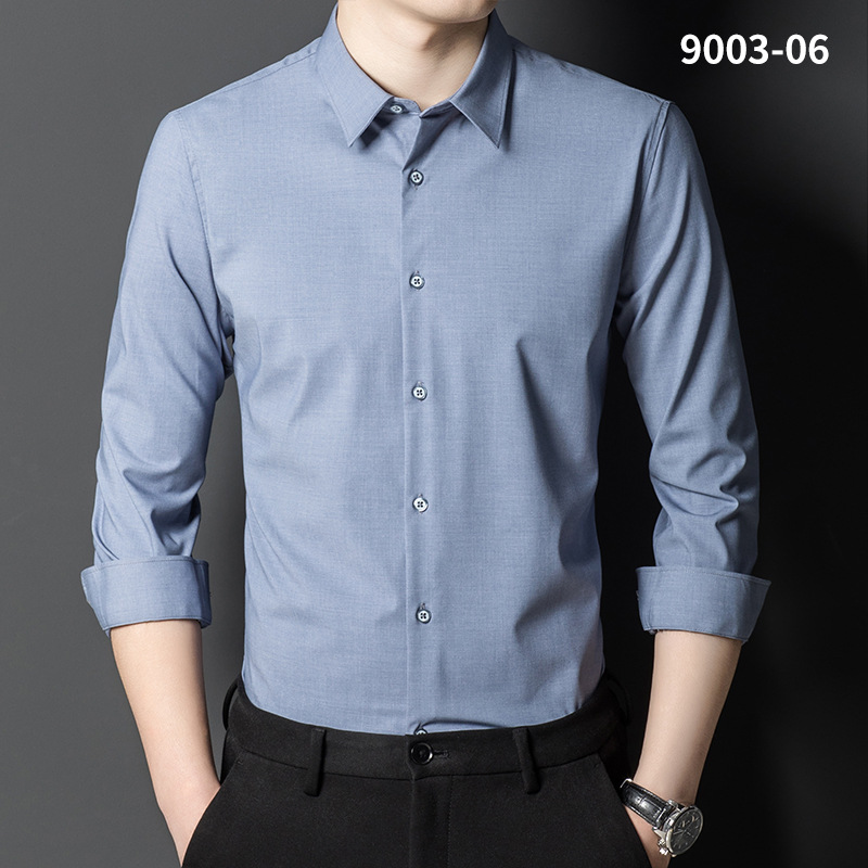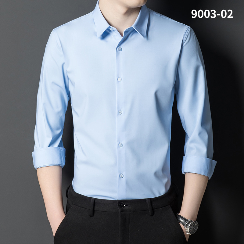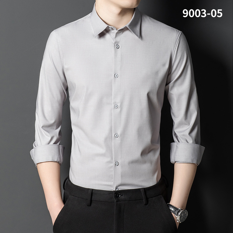 2023 새로운 대나무 섬유 셔츠 남성용 긴팔 도매 멀티 컬러 스트레치 비 다림질 캐주얼 비즈니스 남성 의류스토어 가기
