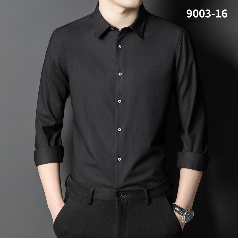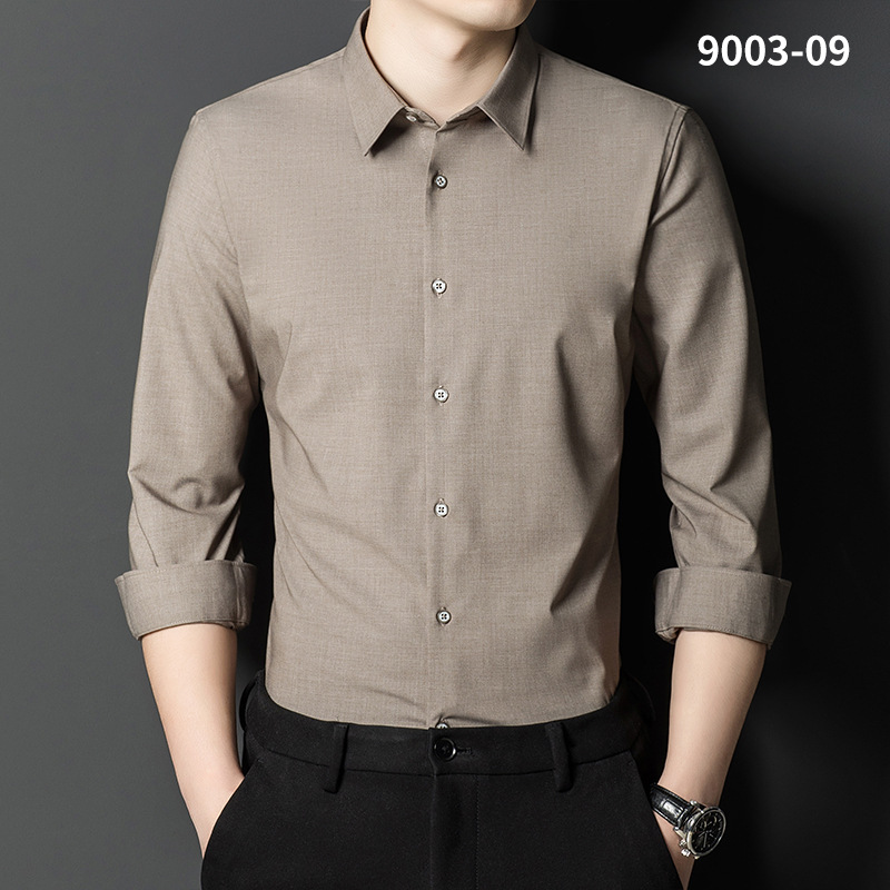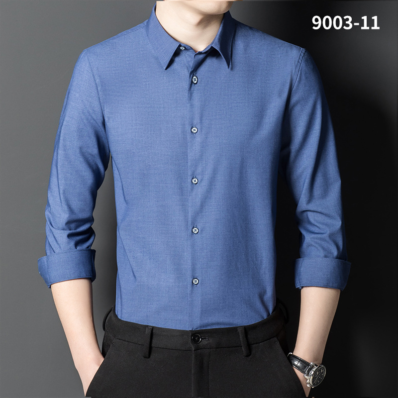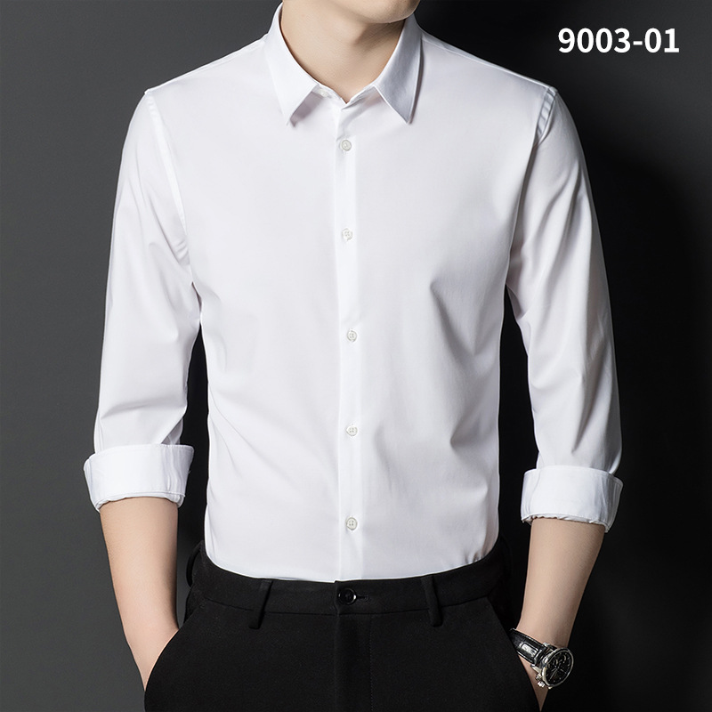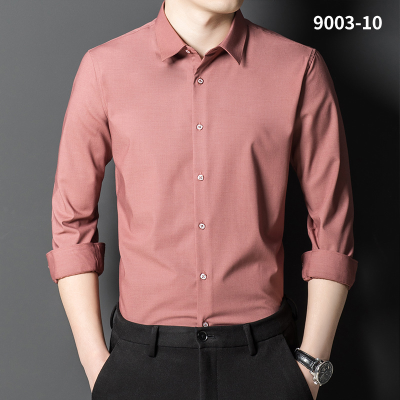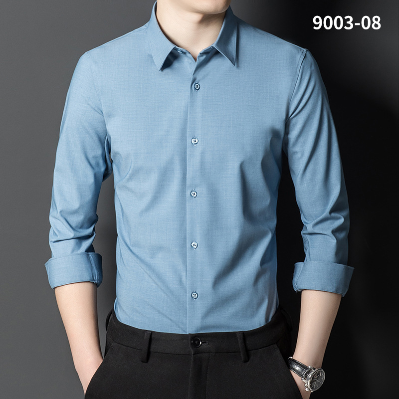2023 새로운 대나무 섬유 셔츠 남성용 긴팔 도매 멀티 컬러 스트레치 비 다림질 캐주얼 비즈니스 남성 의류스토어 가기