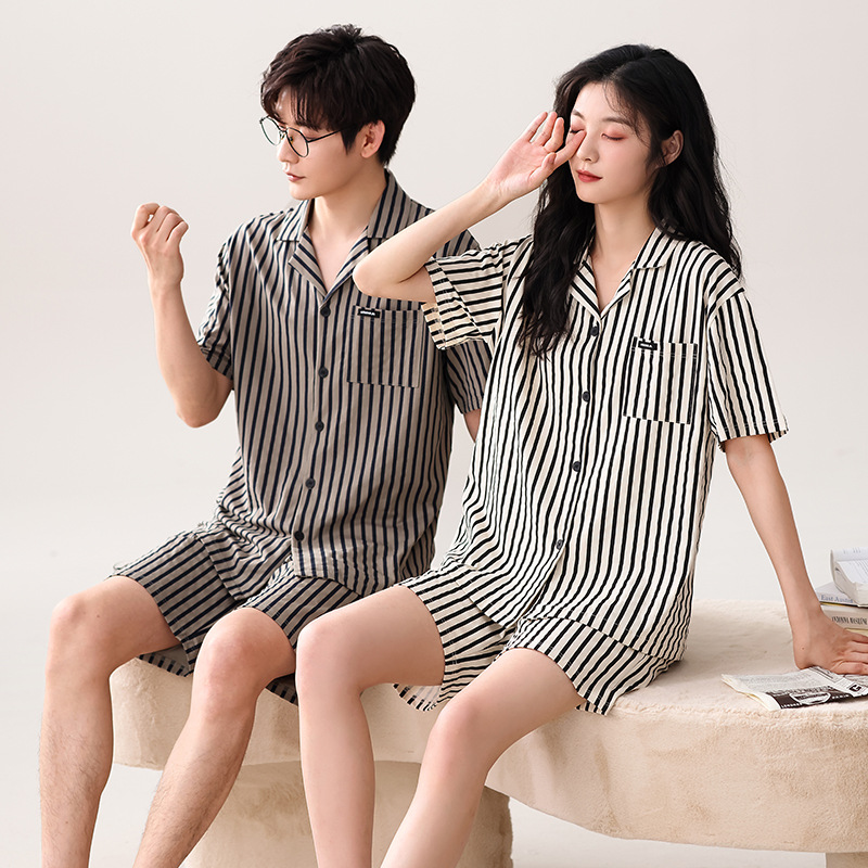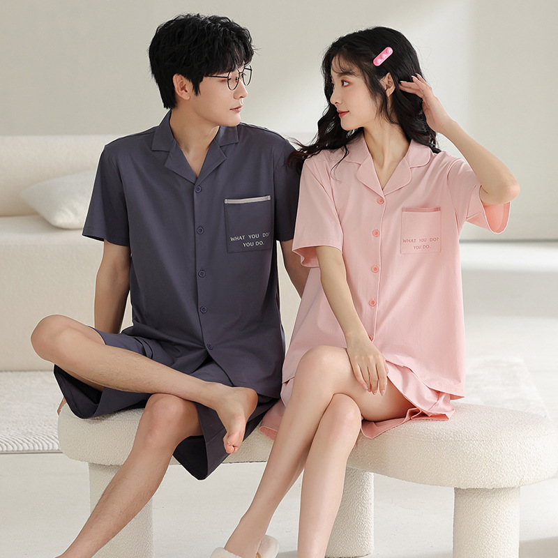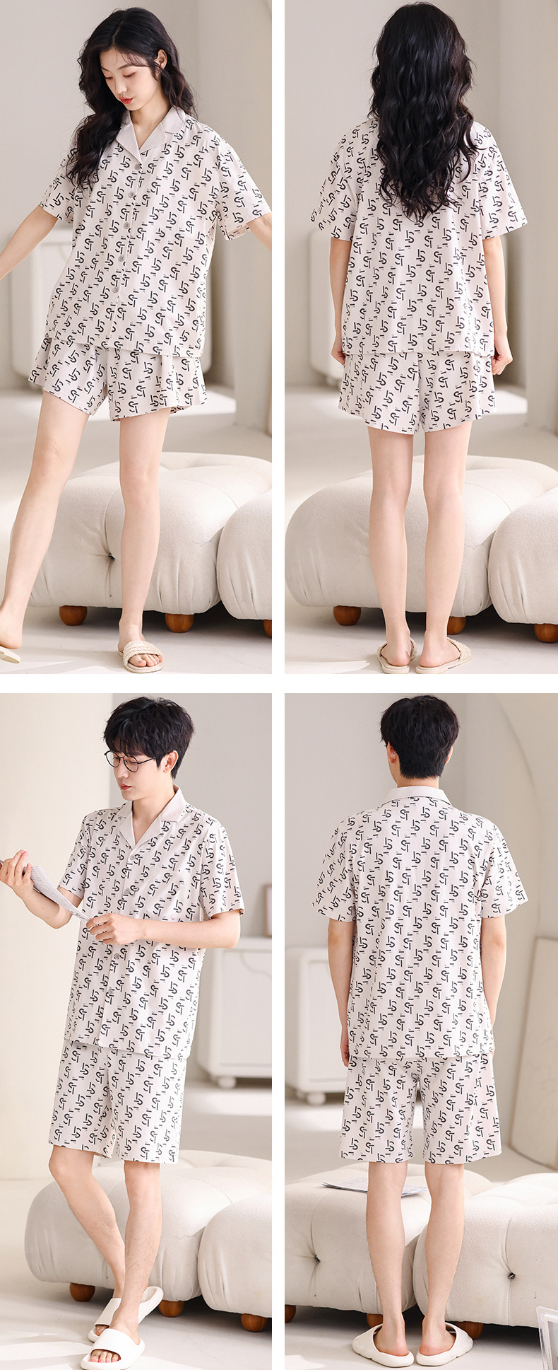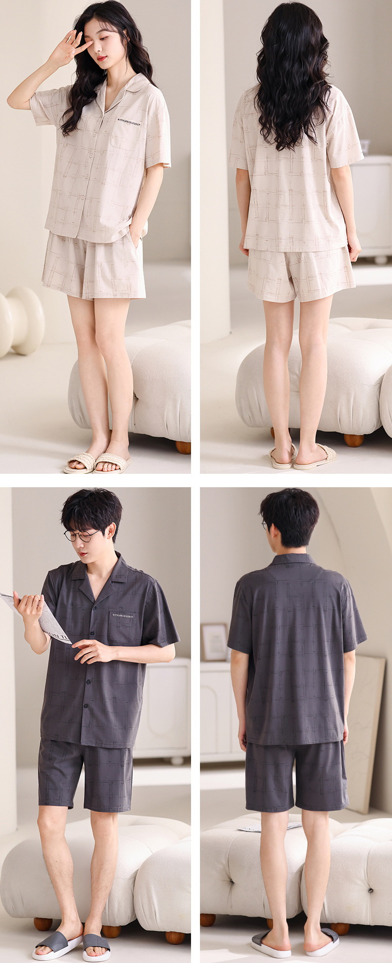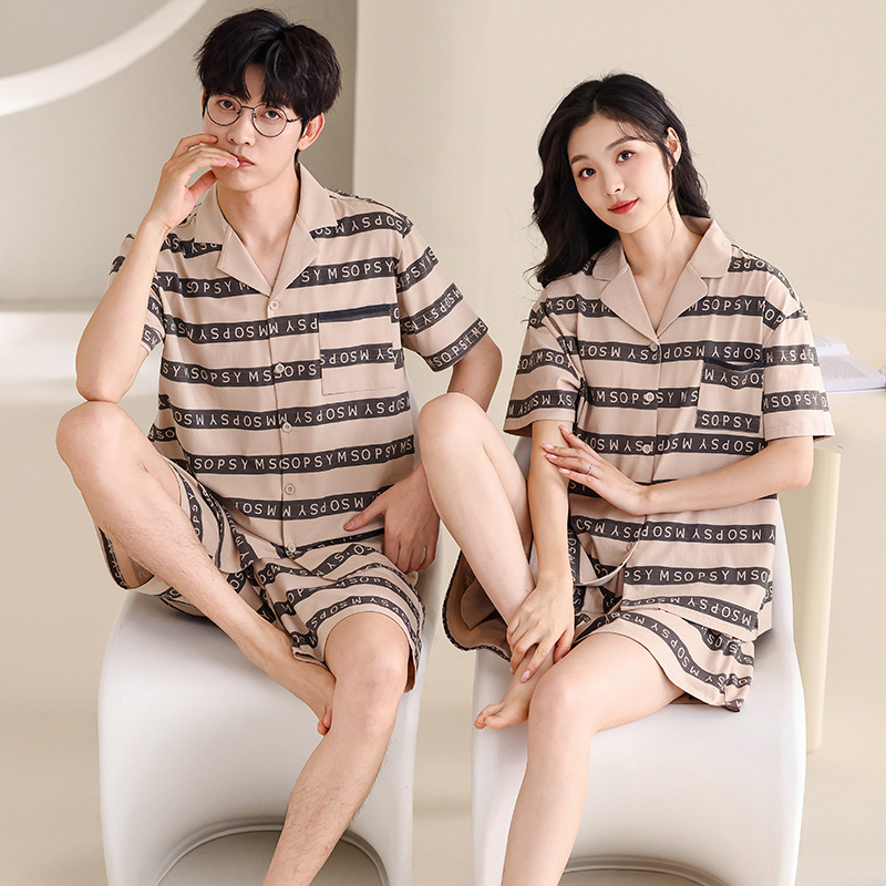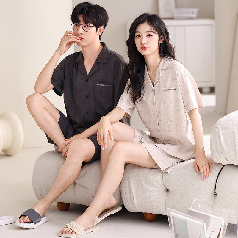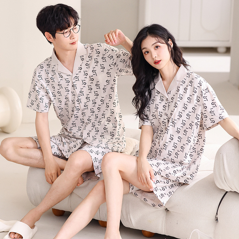 하이 퀄리티 여름 커플 잠옷 쿨 퓨어 코튼 짧은 소매 여성용 카디건 라이크라 코튼 홈 의류 남성용 대형 얇은스토어 가기