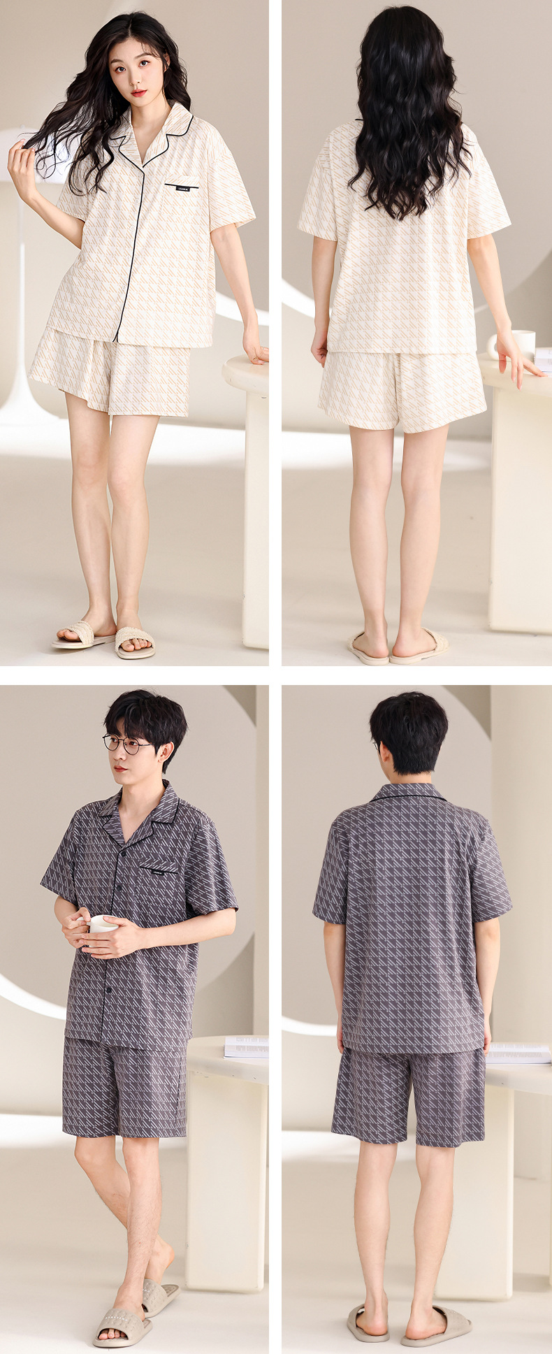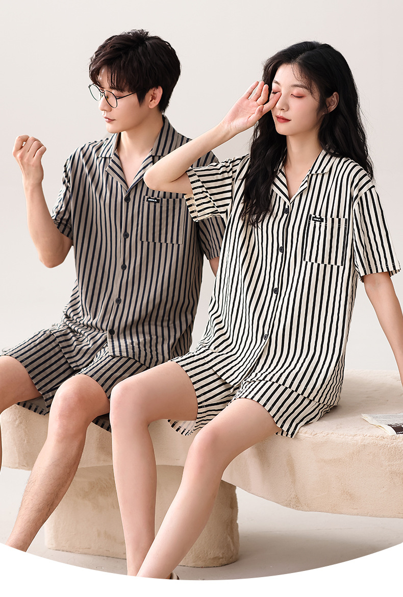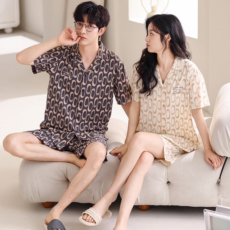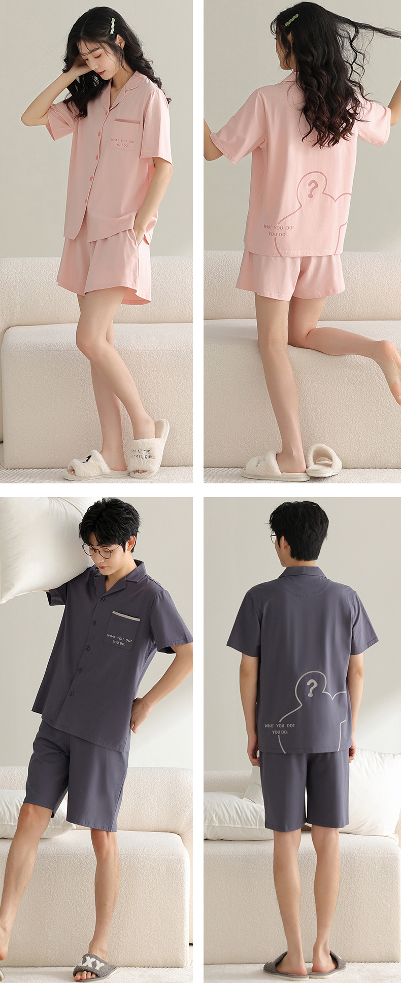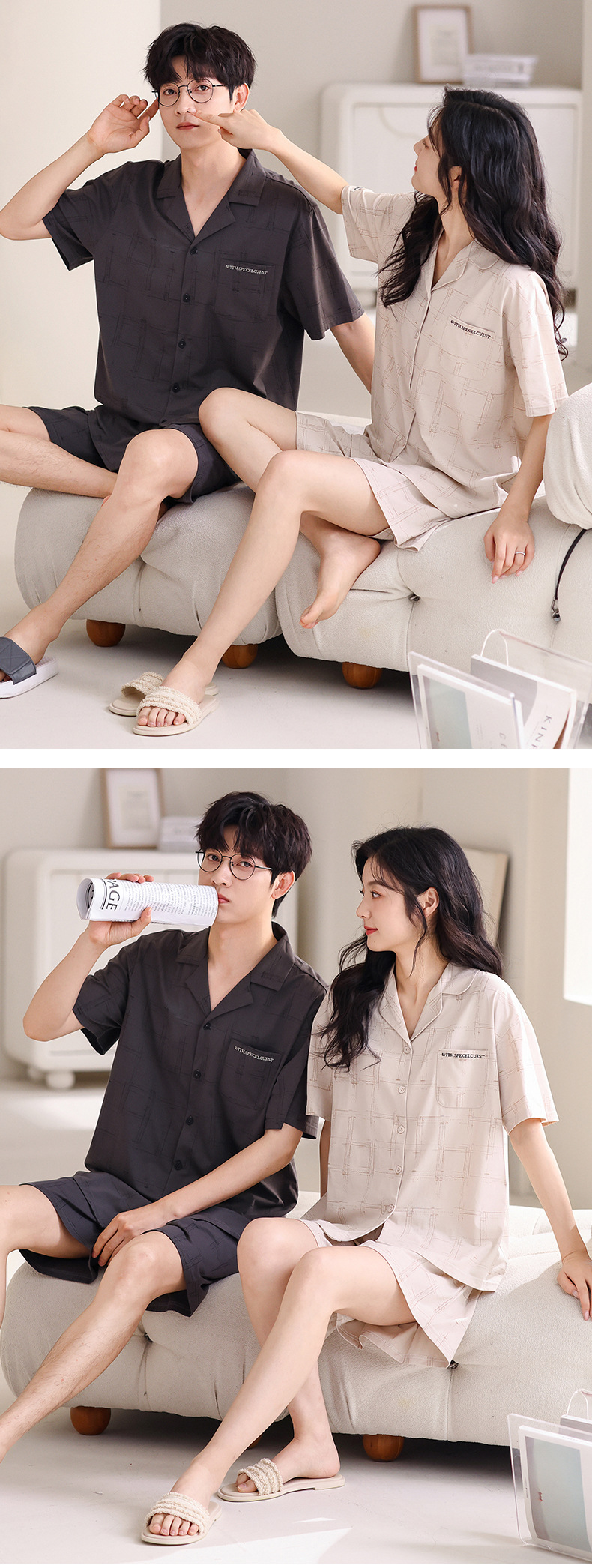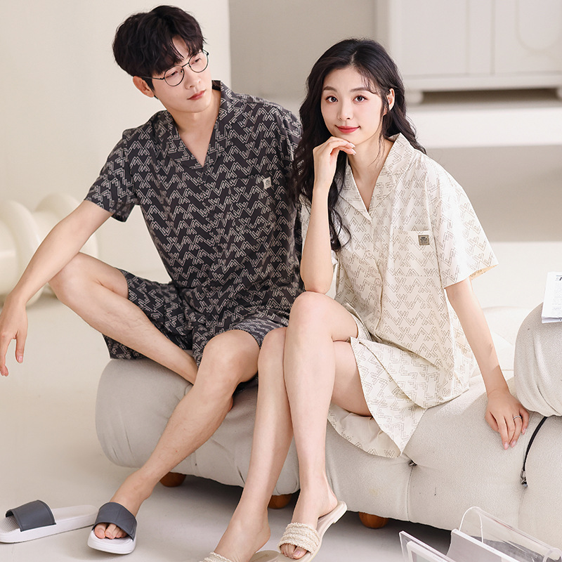 하이 퀄리티 여름 커플 잠옷 쿨 퓨어 코튼 짧은 소매 여성용 카디건 라이크라 코튼 홈 의류 남성용 대형 얇은스토어 가기