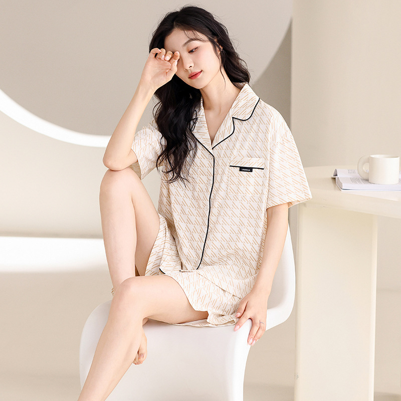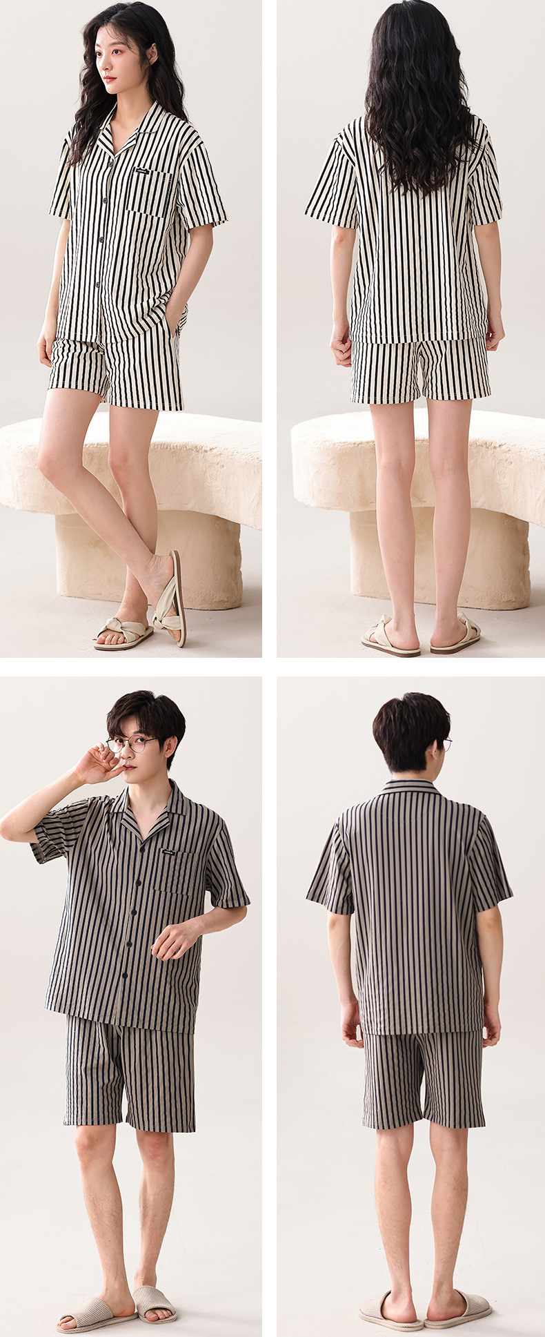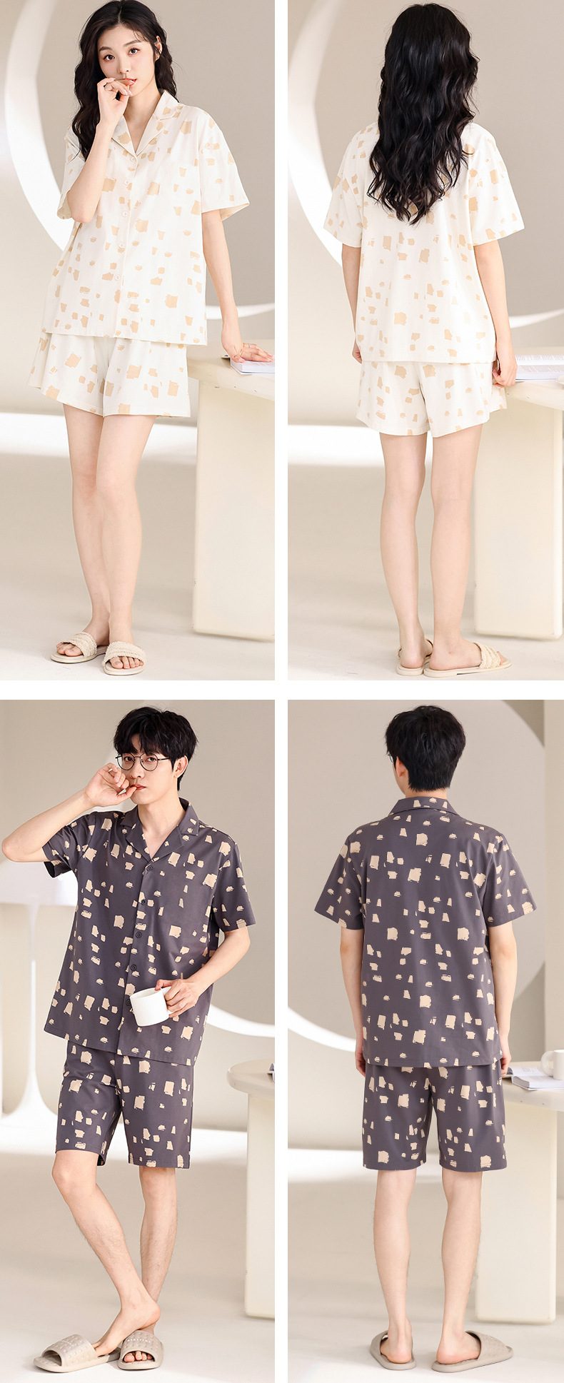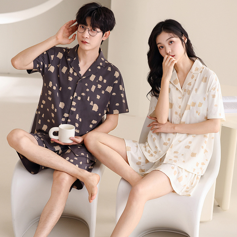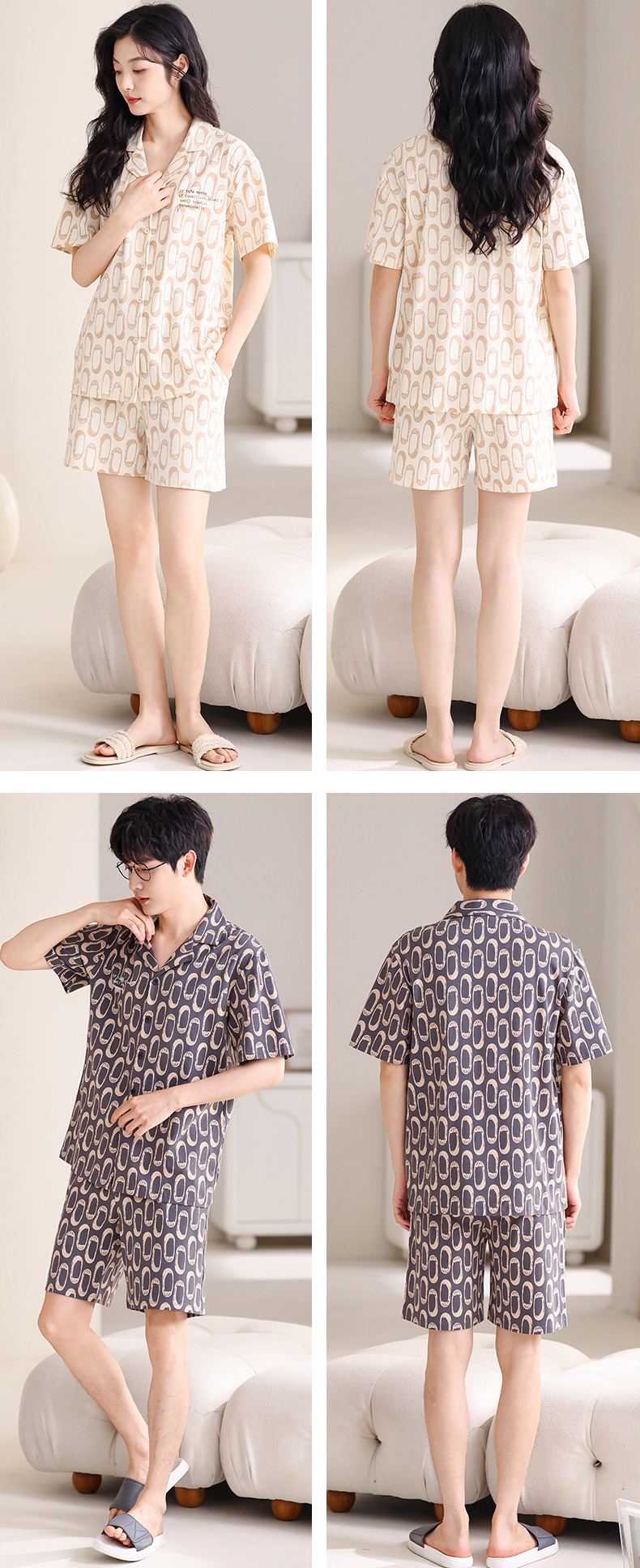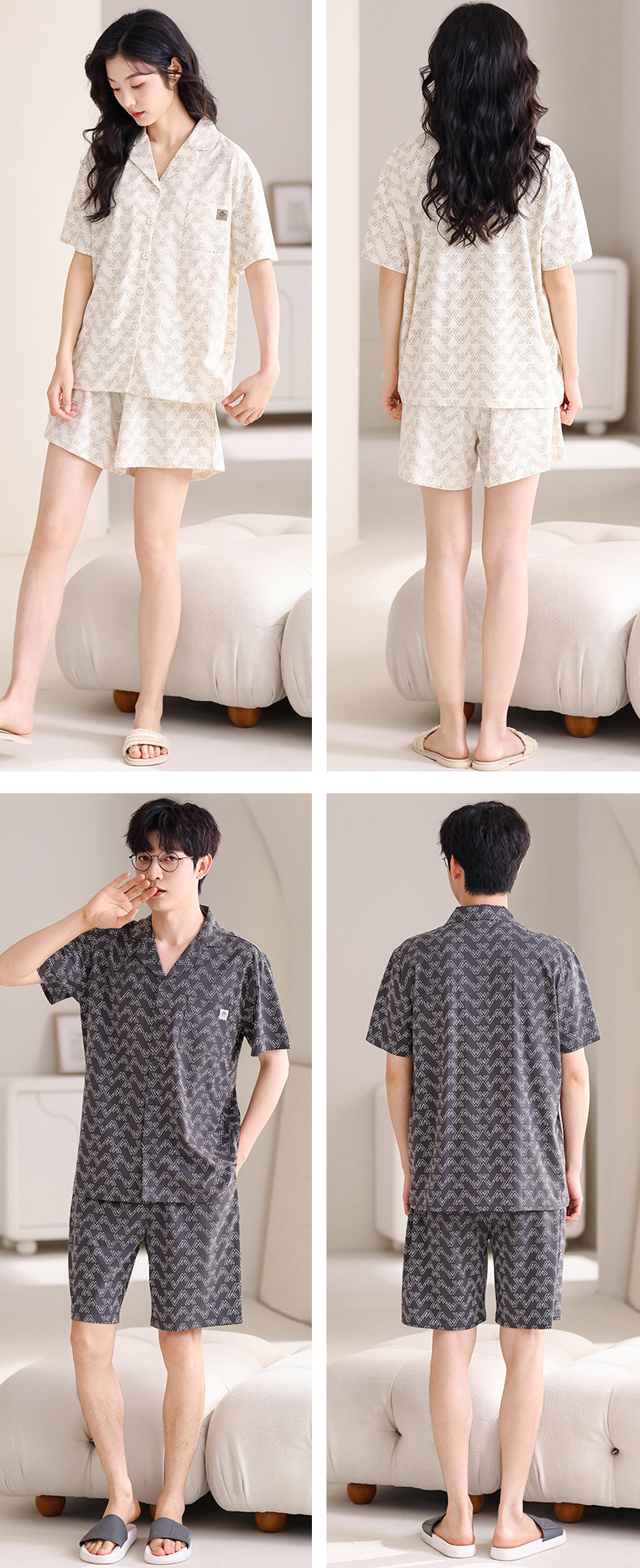 하이 퀄리티 여름 커플 잠옷 쿨 퓨어 코튼 짧은 소매 여성용 카디건 라이크라 코튼 홈 의류 남성용 대형 얇은스토어 가기