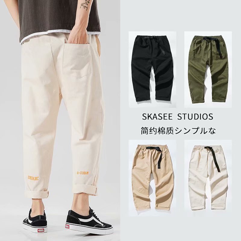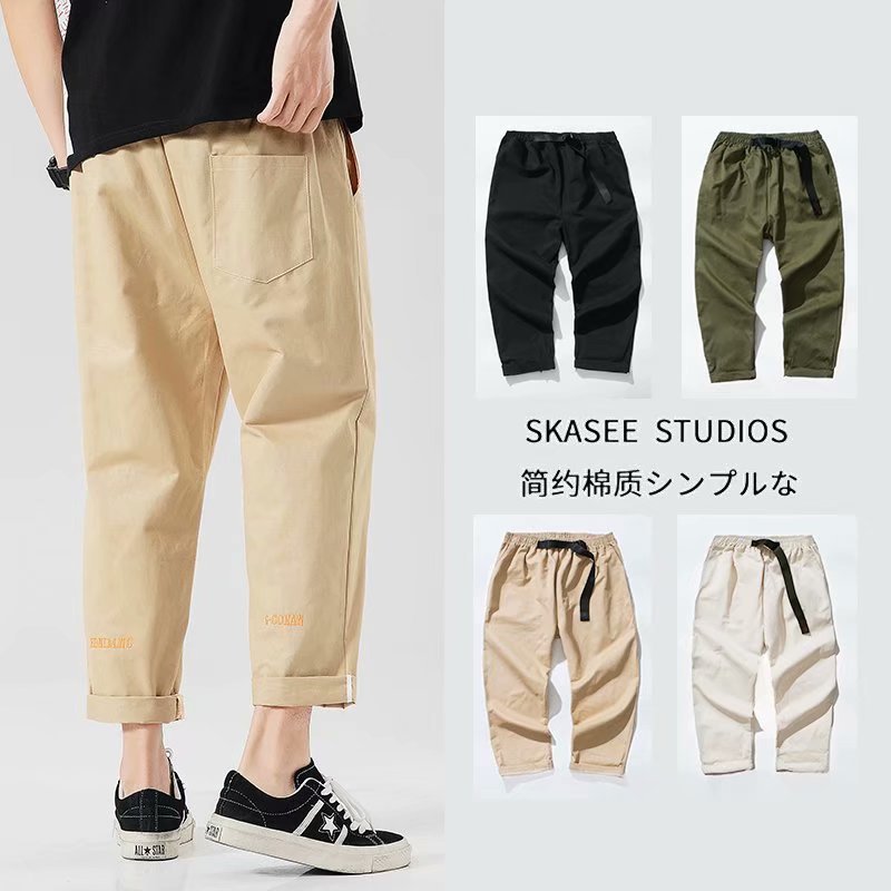 2021 작업복 남성 한국식 유행 발목 길이 바지 유행 브랜드 느슨한 스트레이트 팬츠 남성 여름 얇은 Harlan 스포츠 바지스토어 가기