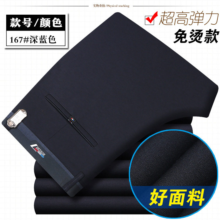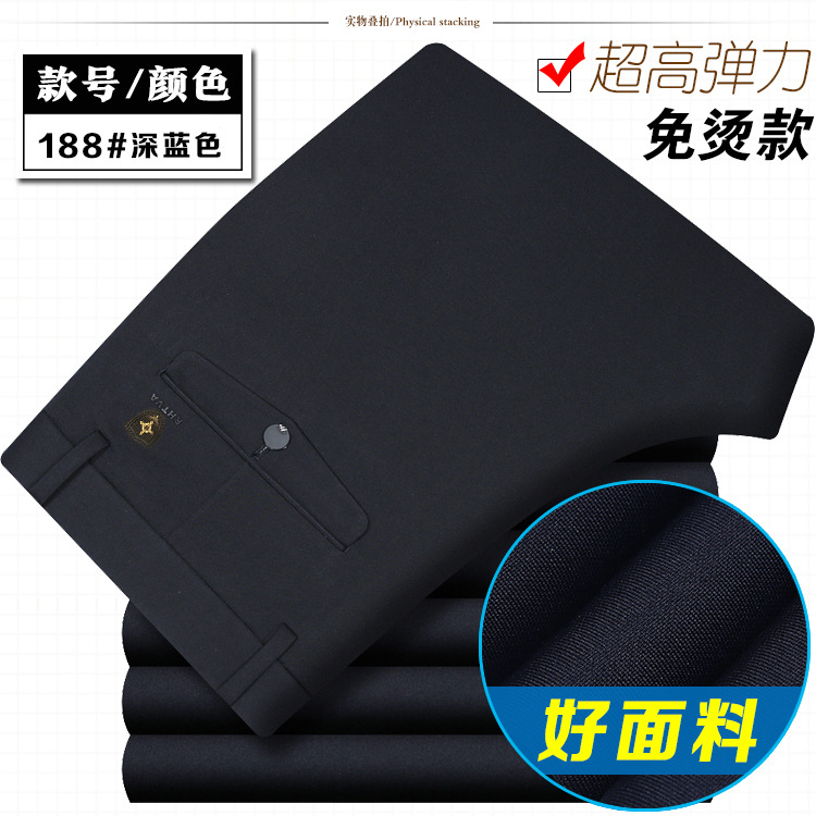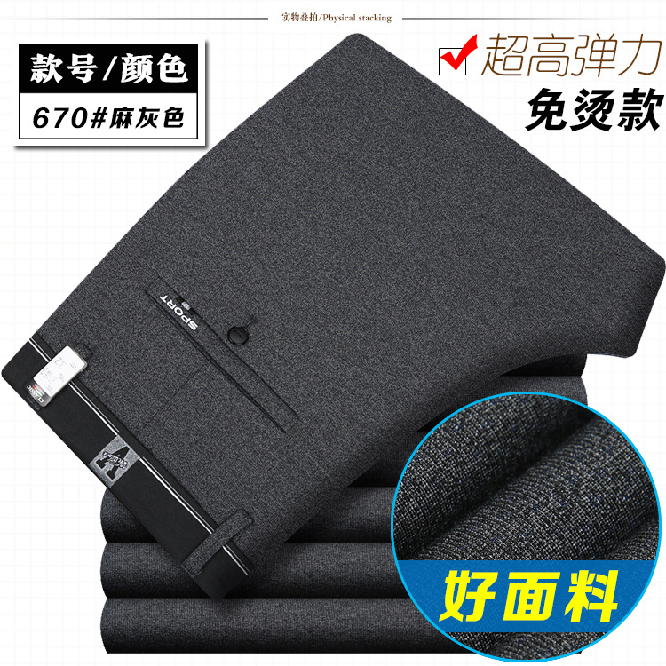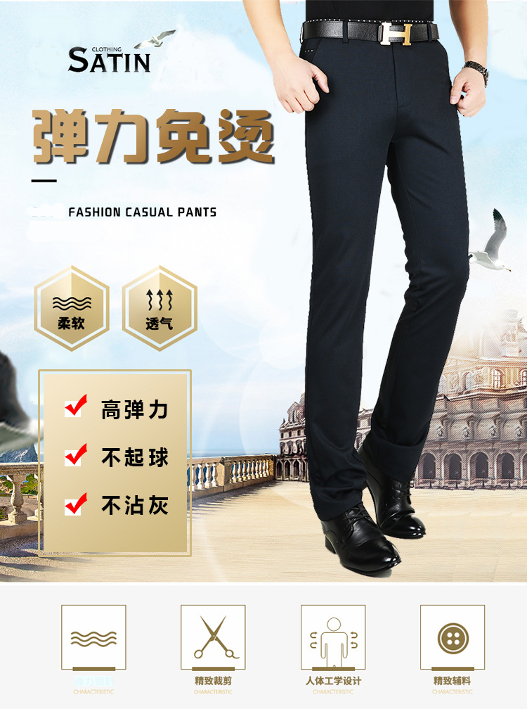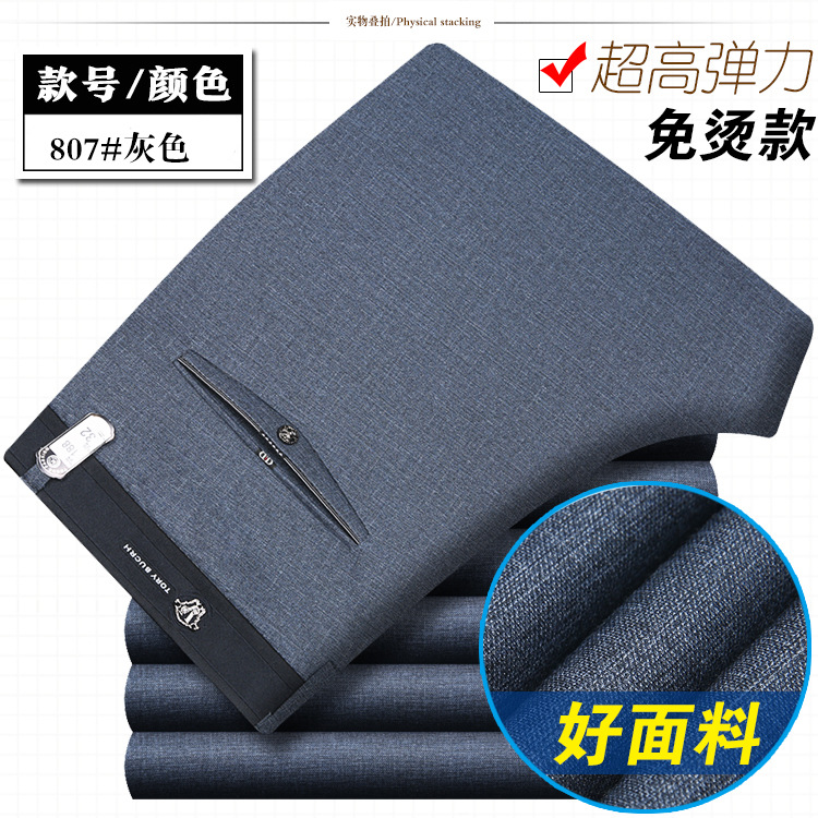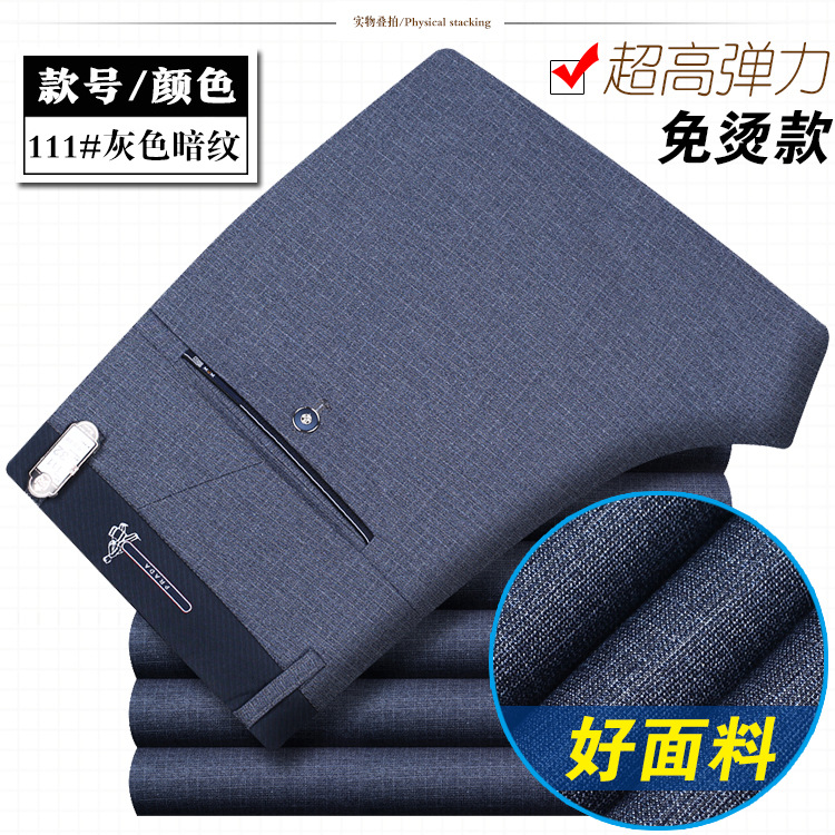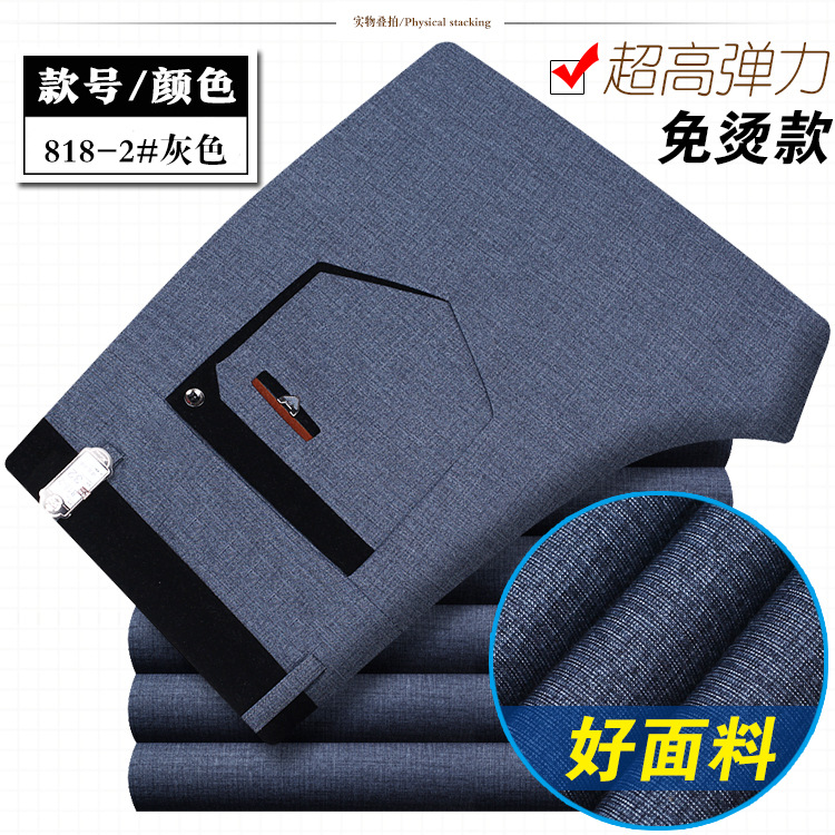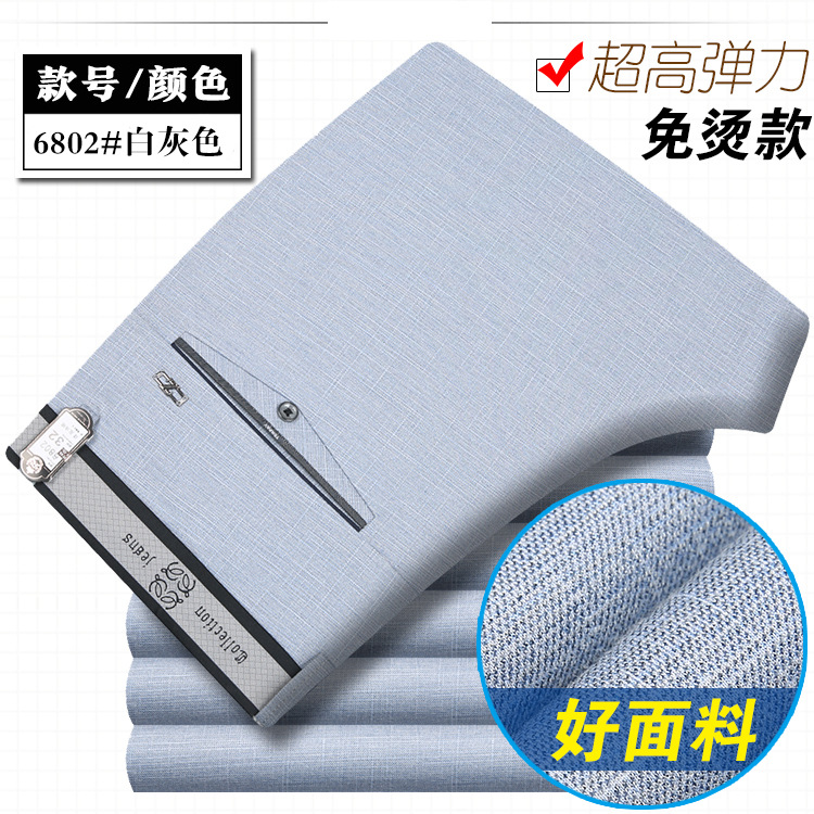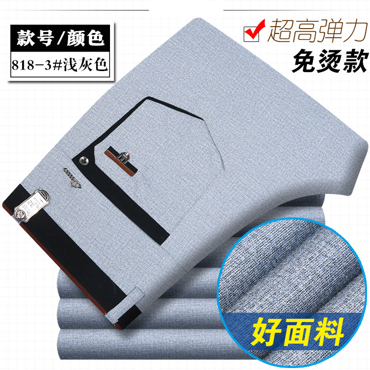 봄과 여름 얇은 남성 바지 남성 캐주얼 바지 고탄성 스트레이트 비 다림질 비즈니스 캐주얼 바지 남성 중년 및 젊은 남성 바지스토어 가기